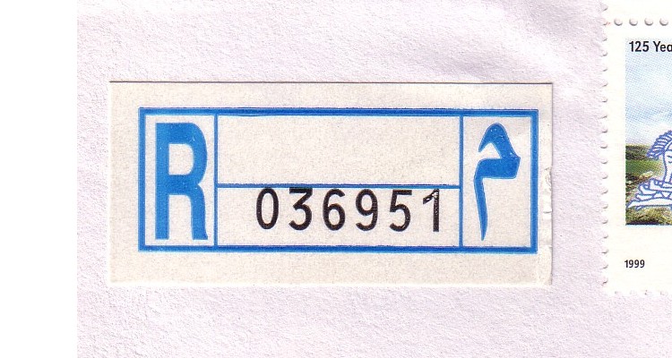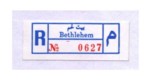 Receipts (or certificates of posting) for registered letters look like this. Sheet size: 161x55mm, imprint size: 143x49mm. I noted that the accompanying letter is postmarked Bethlehem 3 (122), this receipt Bethlehem 4 (199), both 18.04.1999.