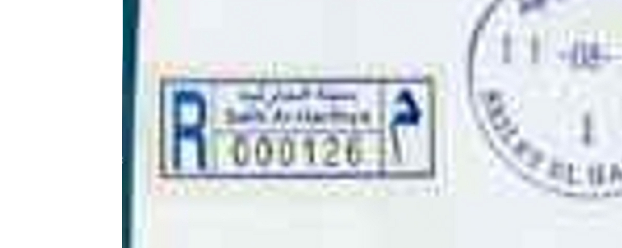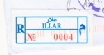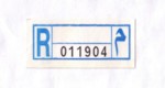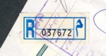 - white self-adhesive labels, printed in blue, with imprinted or manuscript name of the post office, and with imprinted numerator in black. 6 digits. Size: 36.0--36.5x12.5mm (imprint); 42.0--42.5x19mm (label).