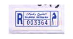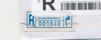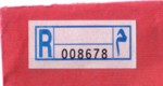 - same as type A1, but different typefaces incl. a noticeably smaller R. Imprint size: 48.75–49.25x19.25–19.5mm (inside). Size of label can vary. Numerator shown with four or five digits.