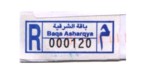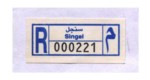 - white self-adhesive labels, printed in black, office name in block capitals, accompanied by the Post Office Number, and with black imprinted numerator (prefixed by No.) with four digits. Imprint size: 49.5x19.5mm (inside). Size of label can vary.