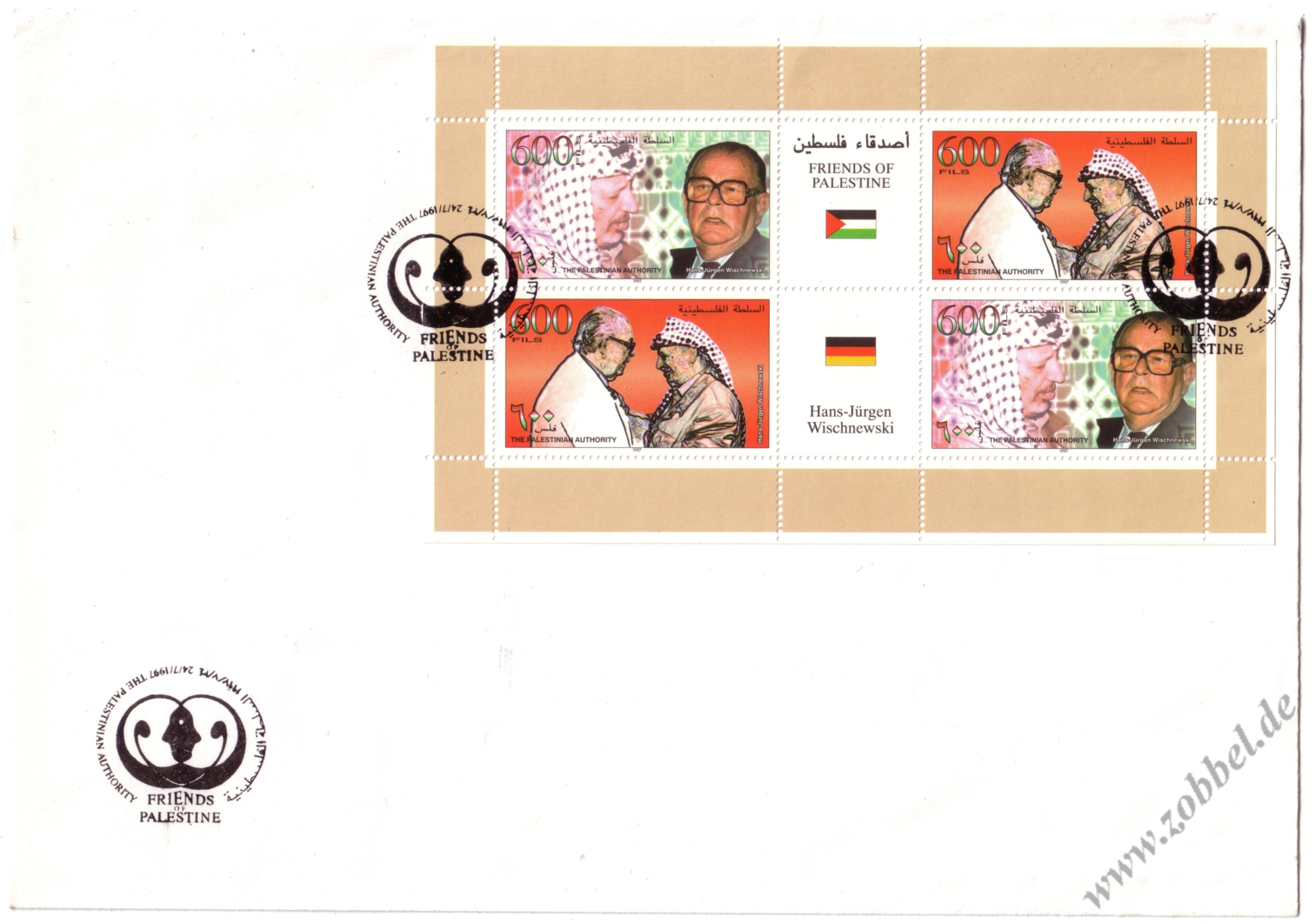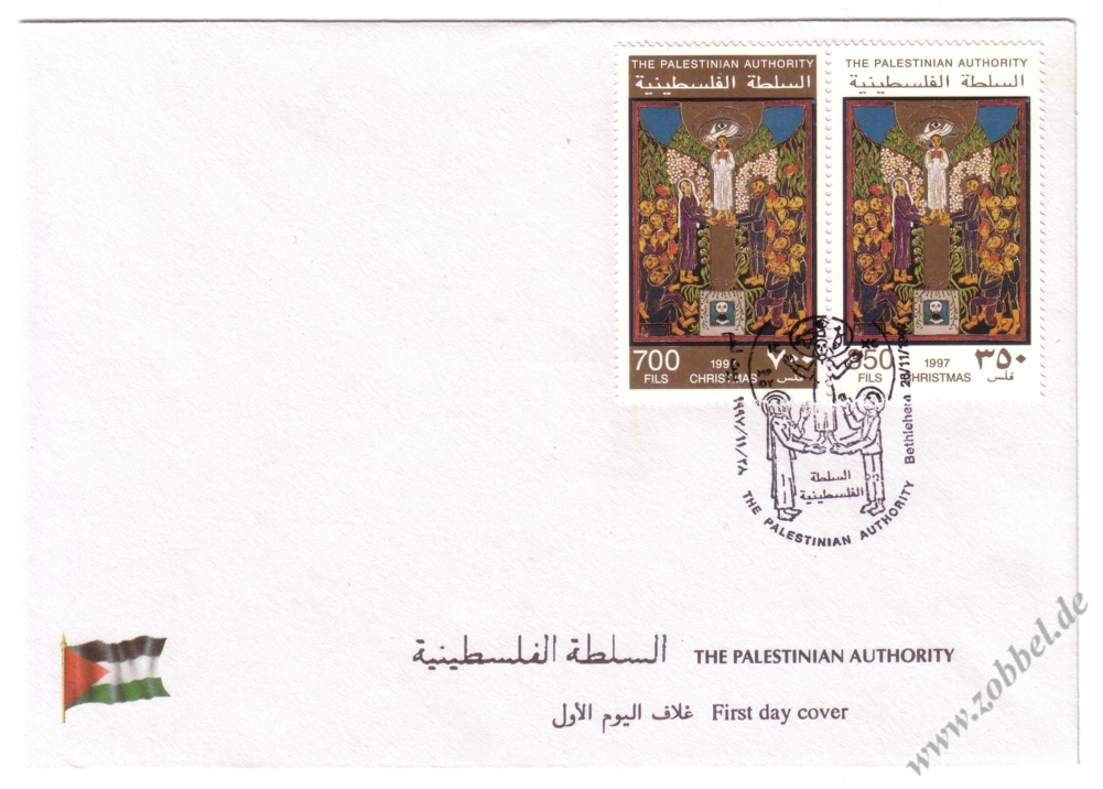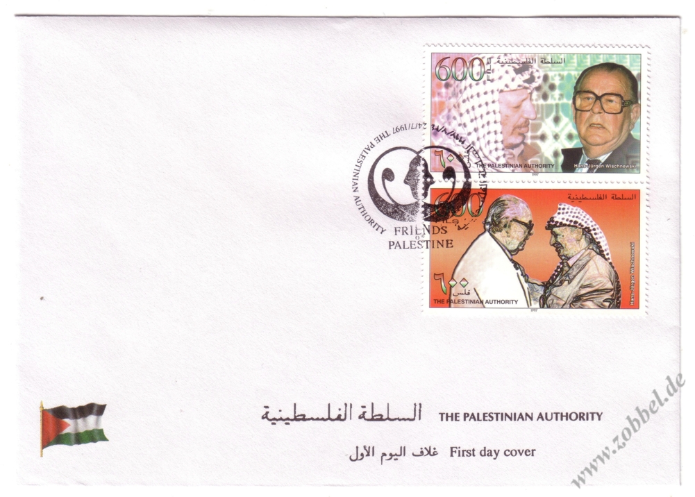 An official FDCs was issued, bearing a special oval postmark (depicting Hebron) dated 19.06.1997.