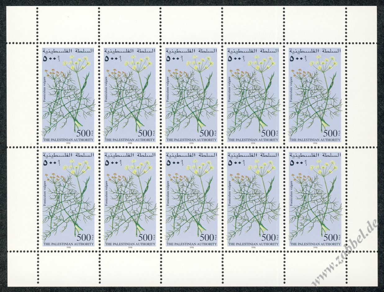 On 30.09.1998 a stamp series depicting medicinal plants native to Palestine was issued. The plants shown are: