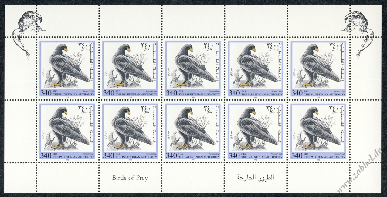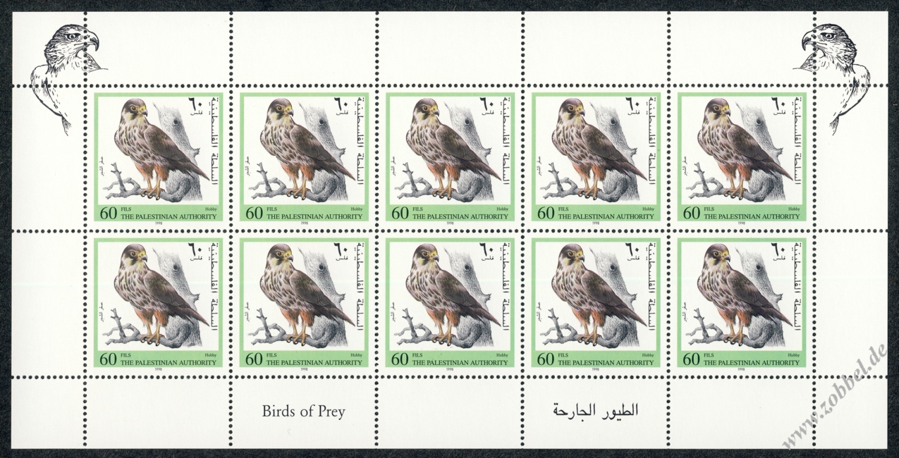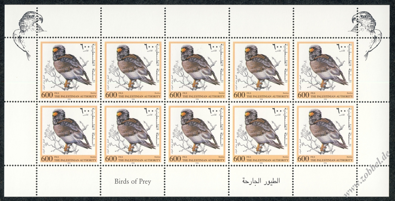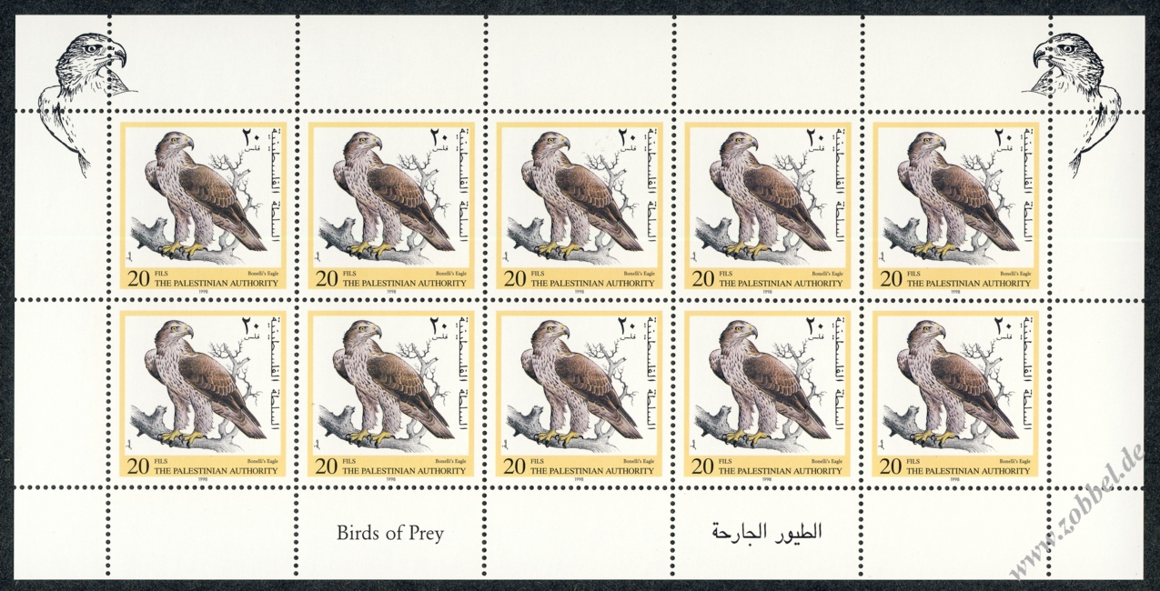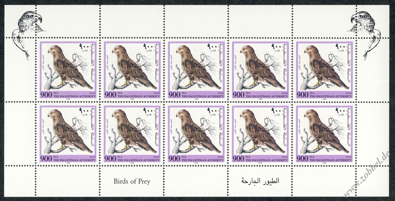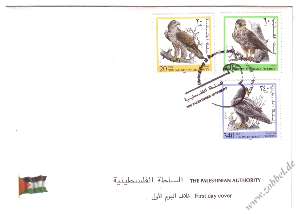 On 12.11.1998 a stamp series depicting birds of prey native to Palestine was issued. The birds shown are: