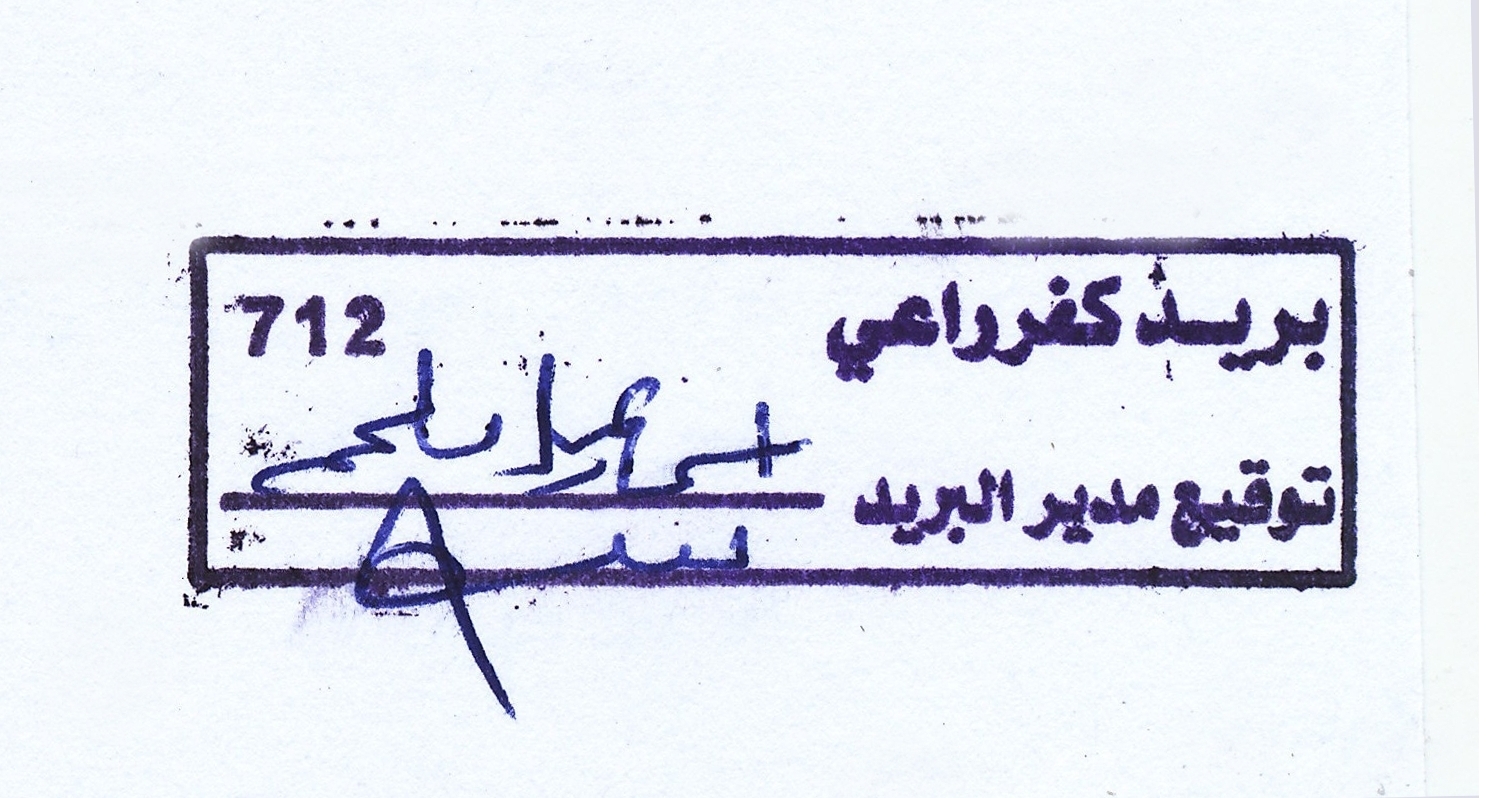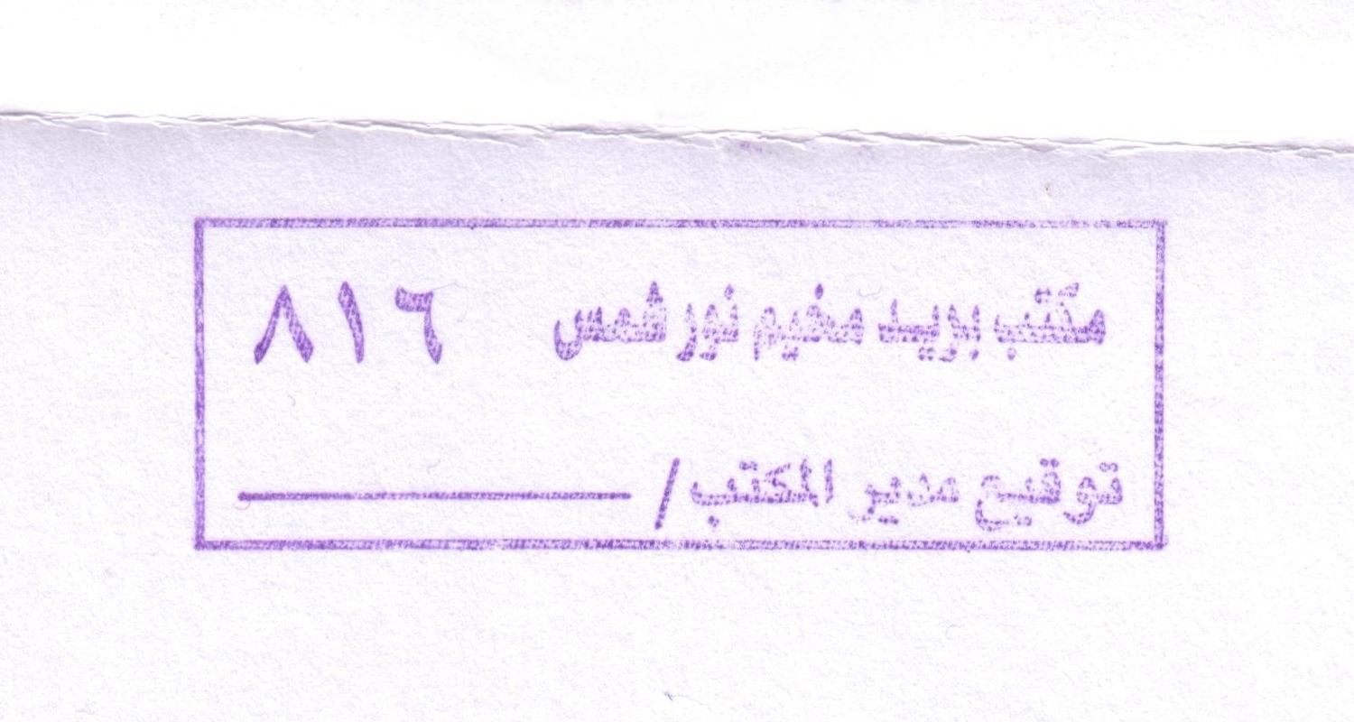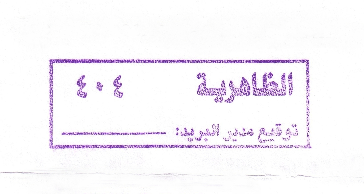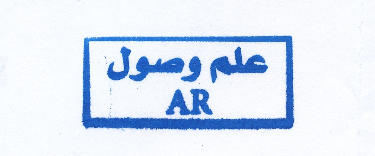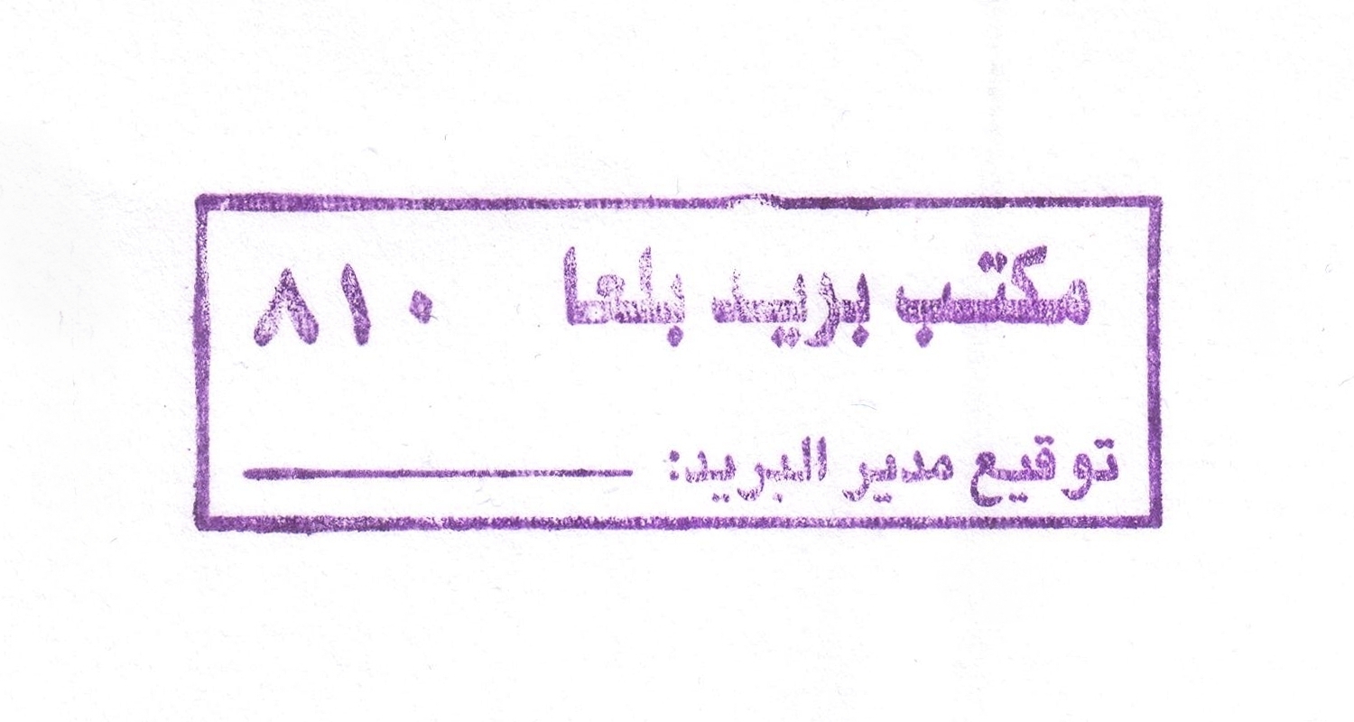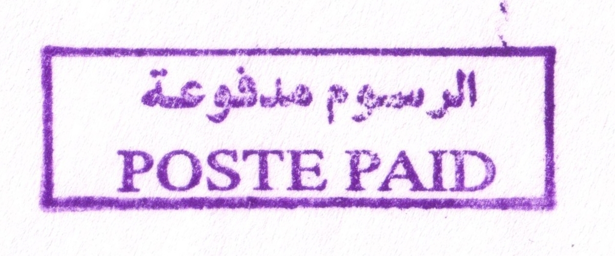Datestamp inscribed "CASH" are used for Postal bank transactions and payment of bills. There are several types of boxed cachet, with some with rounded corners (type 3 and 4), using different inscription and fonts. Arab inscription generally مكتب بريد or بريد and the office's name and الصندوق or صندوق with the branch-code on both left (bottom-to-top) and right (top-to-bottom) segements. The central datestamp is applied manually in some cachets (?)