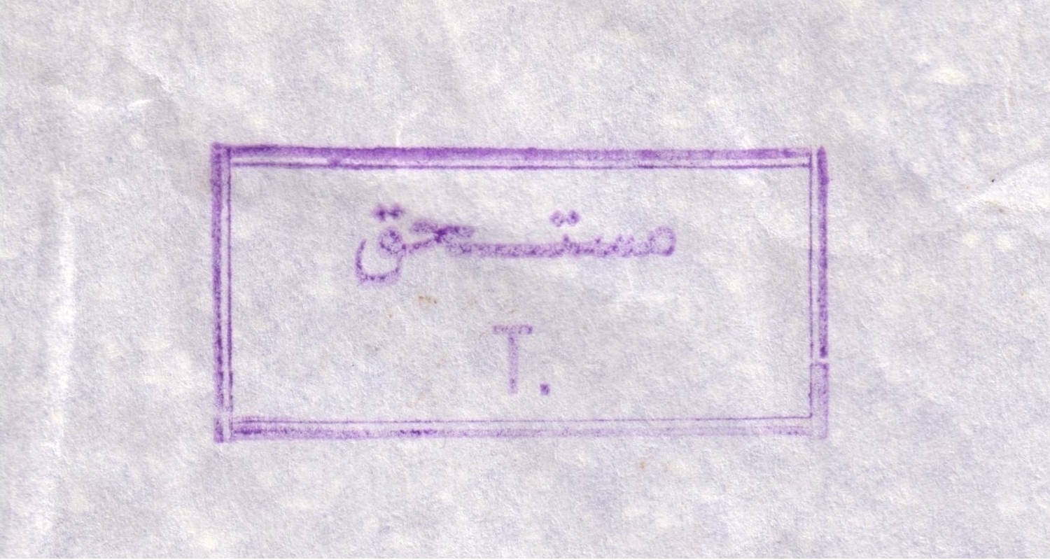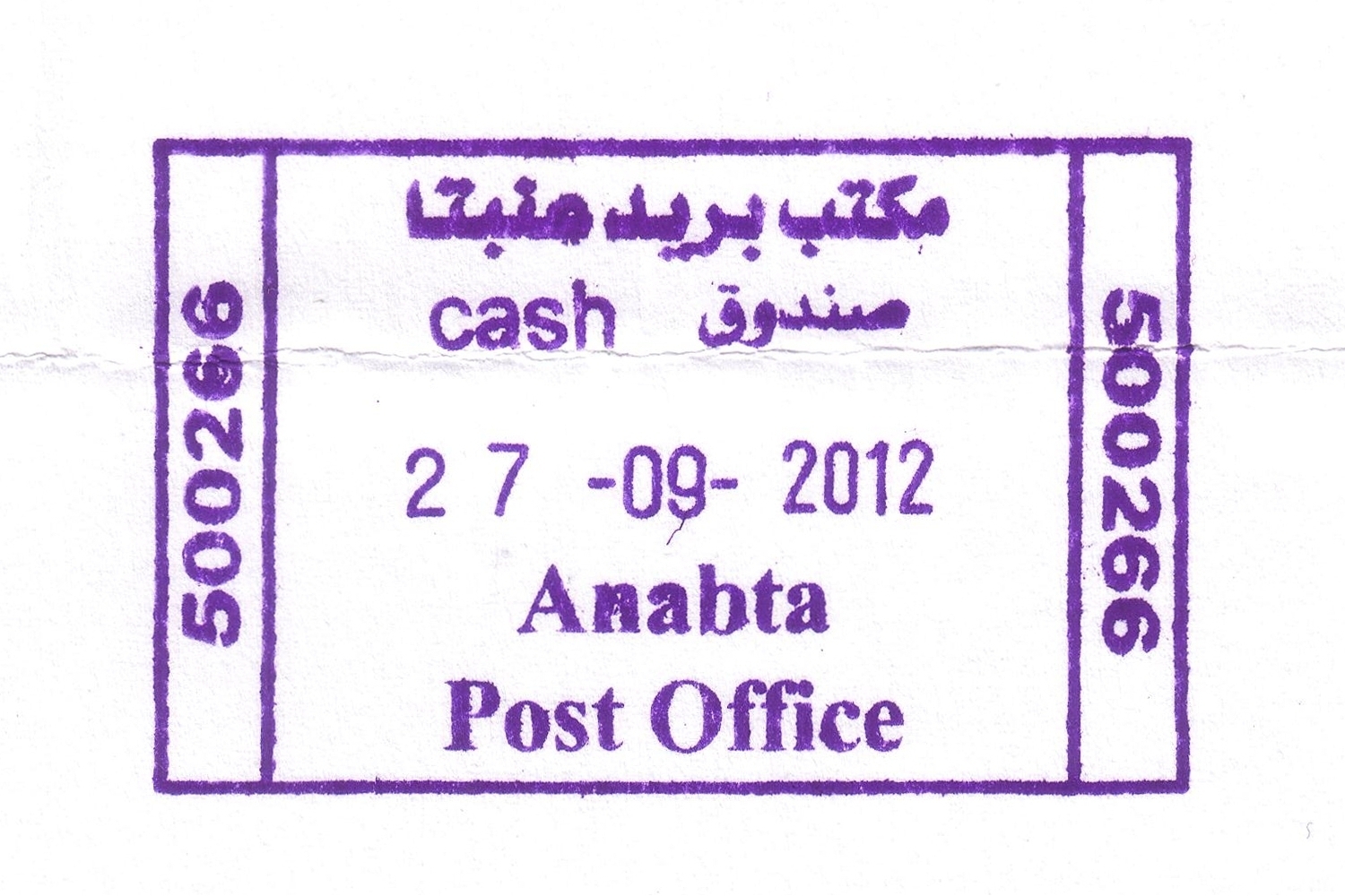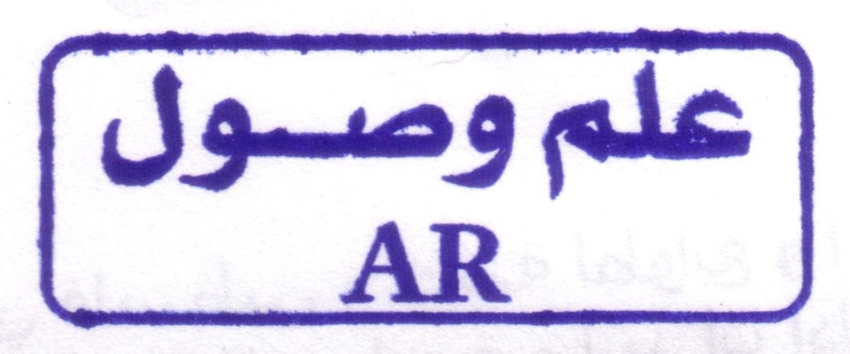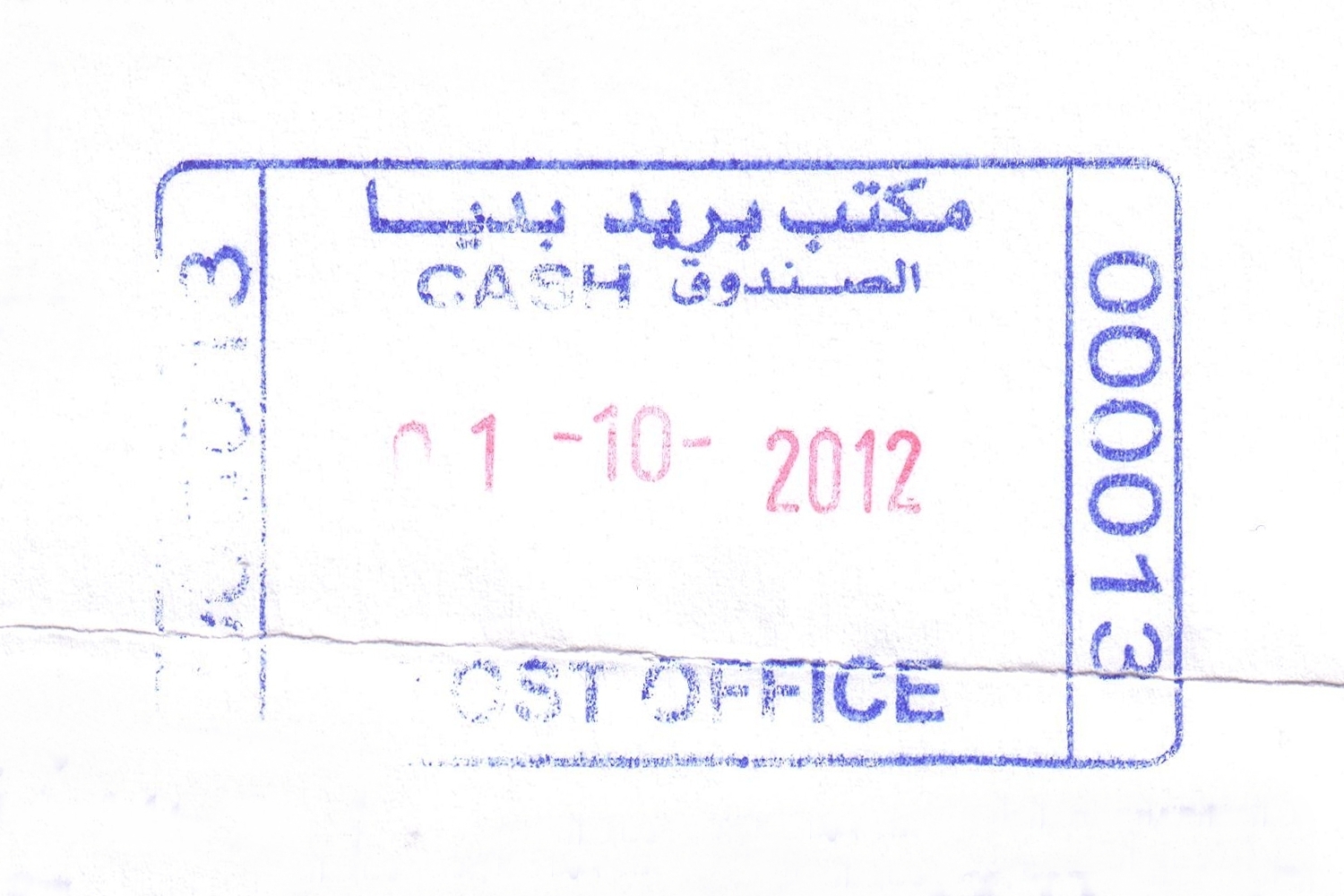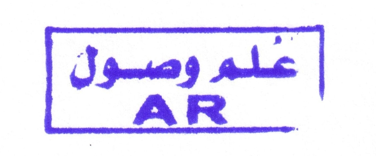 Datestamp inscribed "CASH" are used for Postal bank transactions and payment of bills. There are several types of boxed cachet, with some with rounded corners (type 3 and 4), using different inscription and fonts. Arab inscription generally مكتب بريد or بريد and the office's name and الصندوق or صندوق with the branch-code on both left (bottom-to-top) and right (top-to-bottom) segements. The central datestamp is applied manually in some cachets (?)