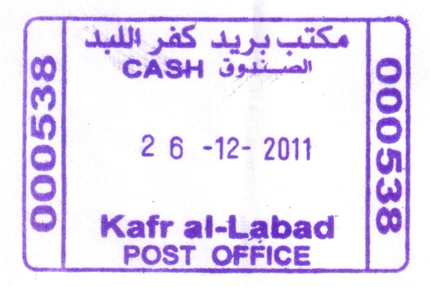 "CASH" and name upper case, un-serifed, no "POST OFFICE", no branch-code left & right (known only from Saffa, West Ramallah)