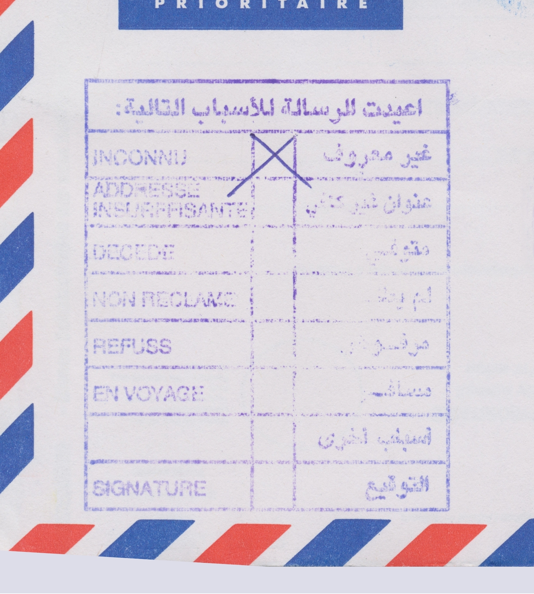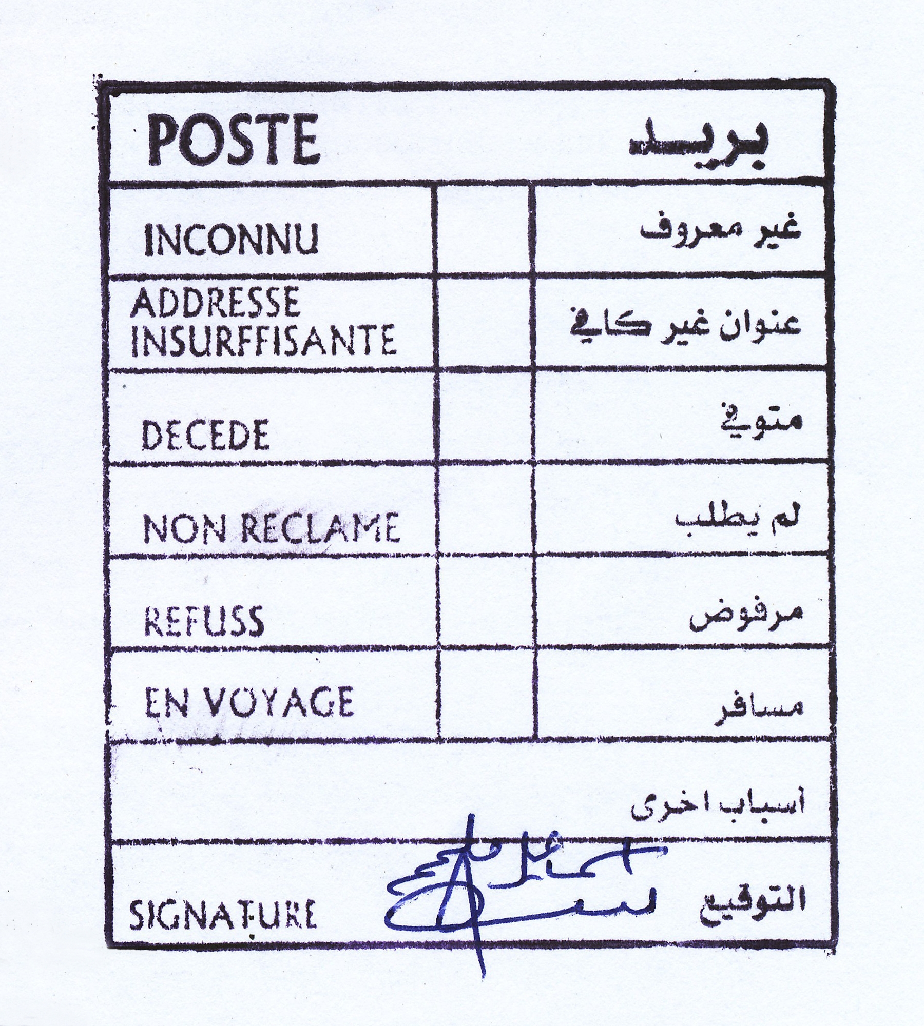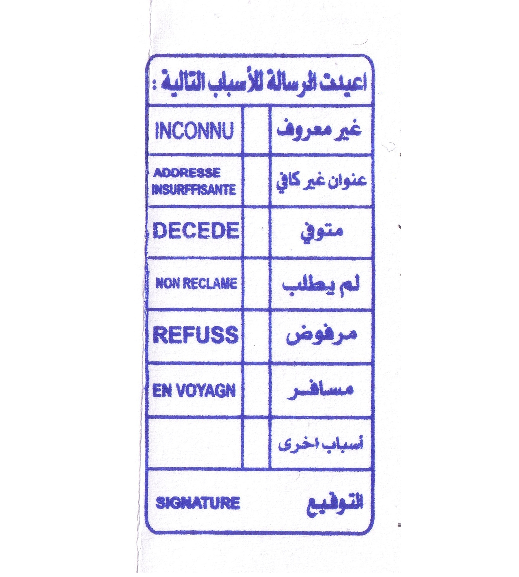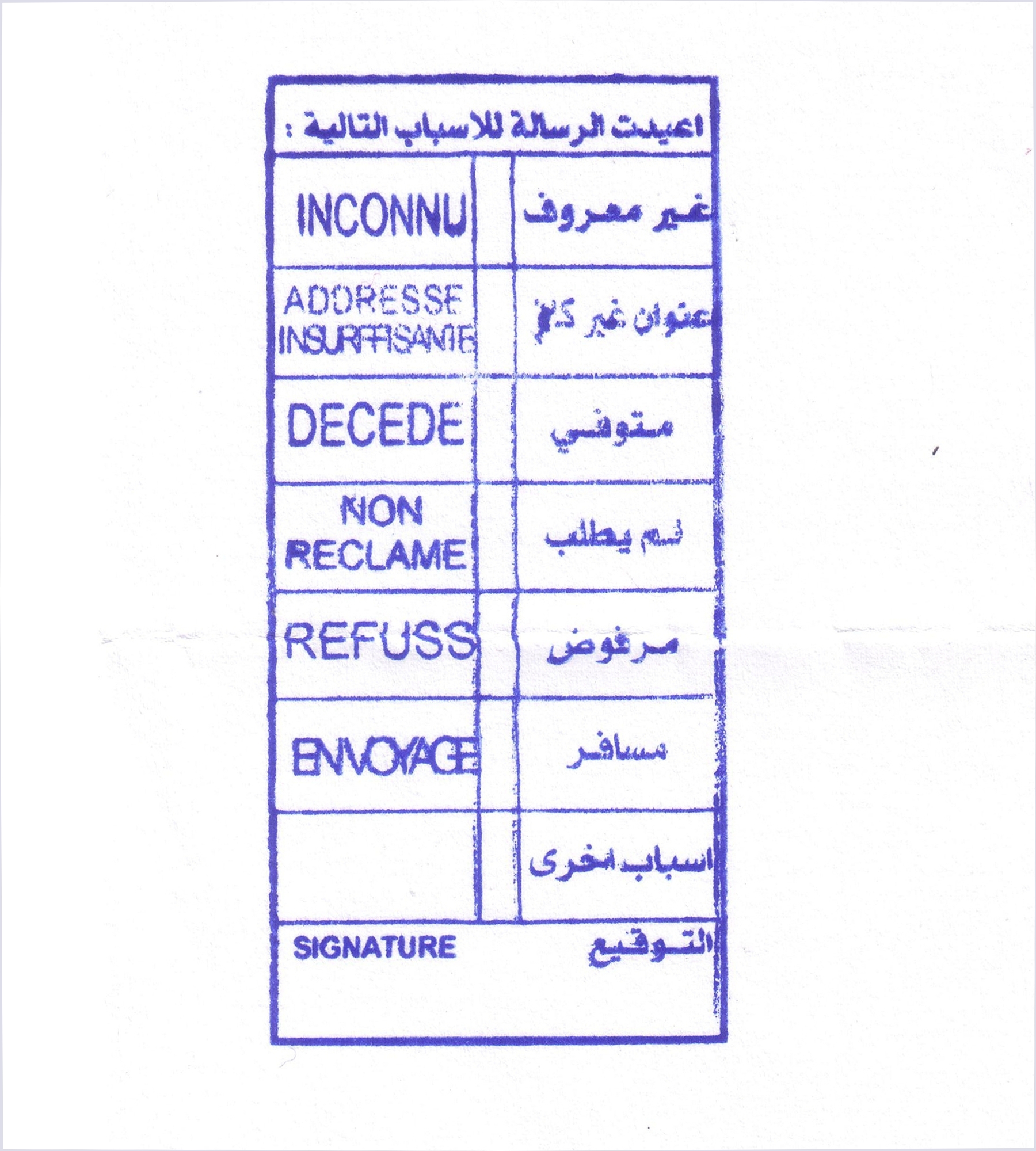 "اعيدت الرسالة للاسباب التالية" (translates as "The letter was returned for the following reasons"