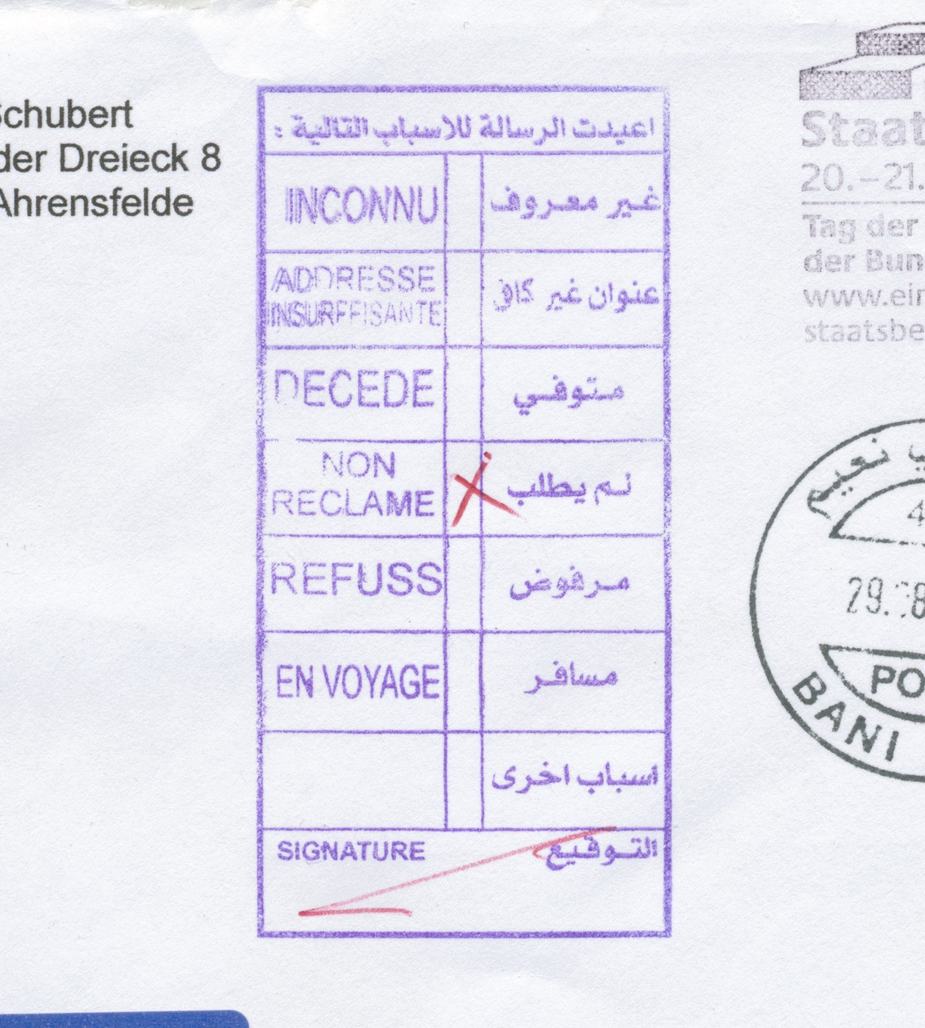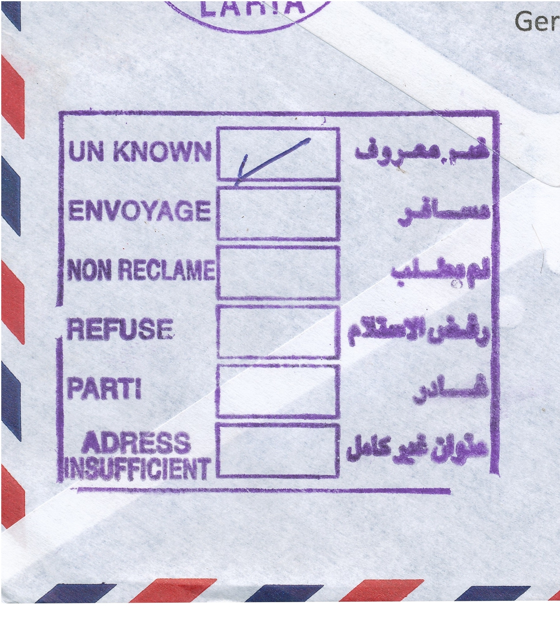 When a letter cannot be delivered, these is notified by a range of cachets. Three basic designs are known:
