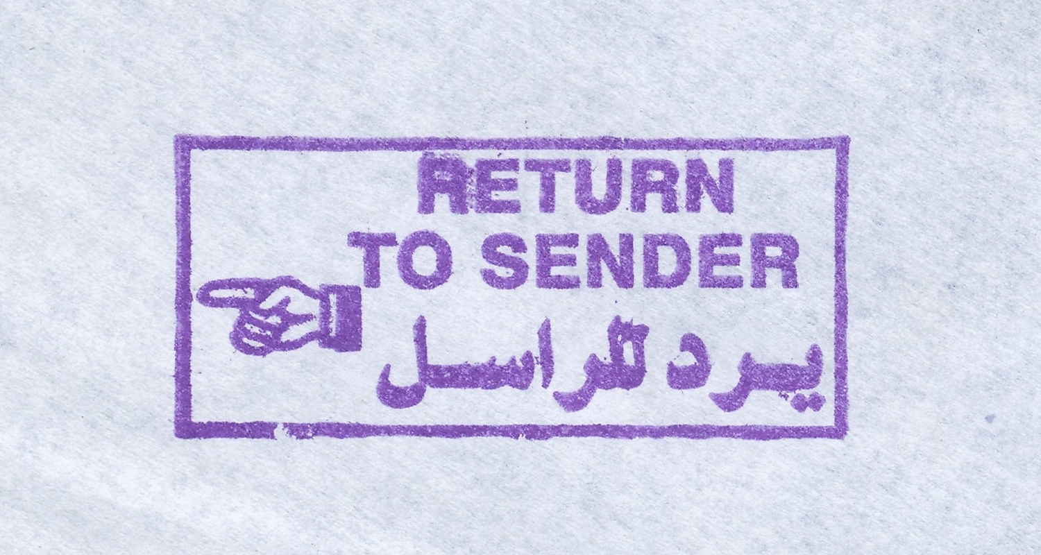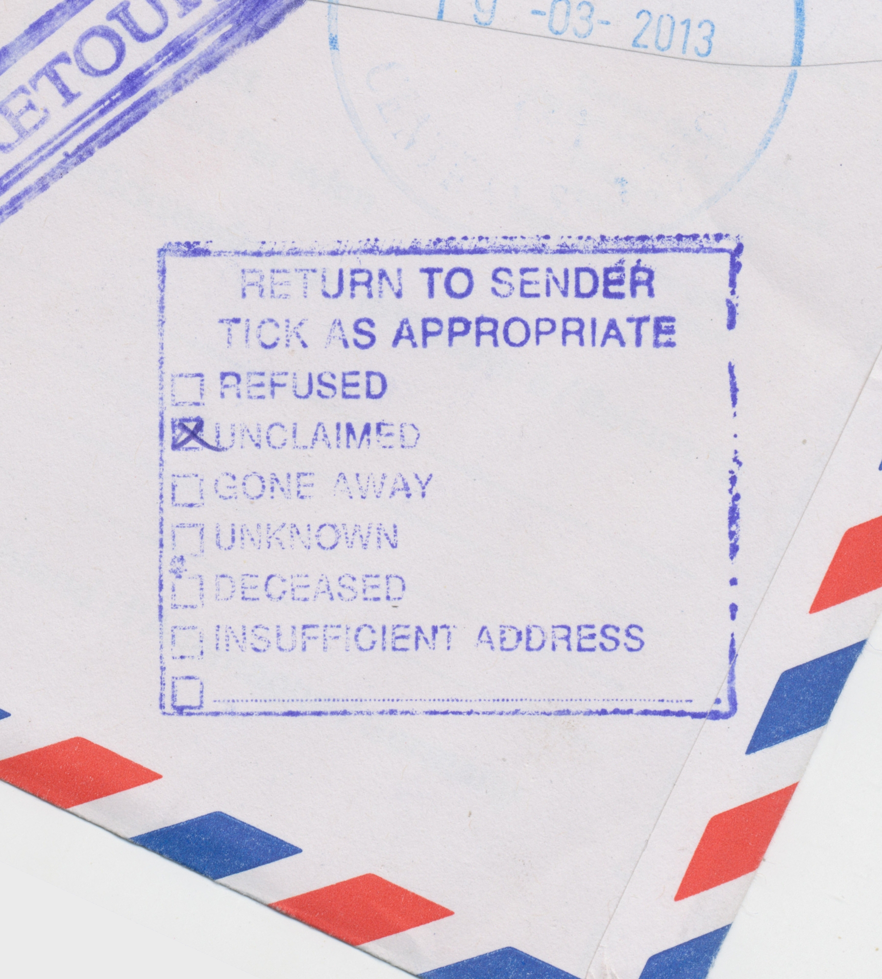 - English only heading "RETURN TO SENDER / TICK AS APPROPRIATE"