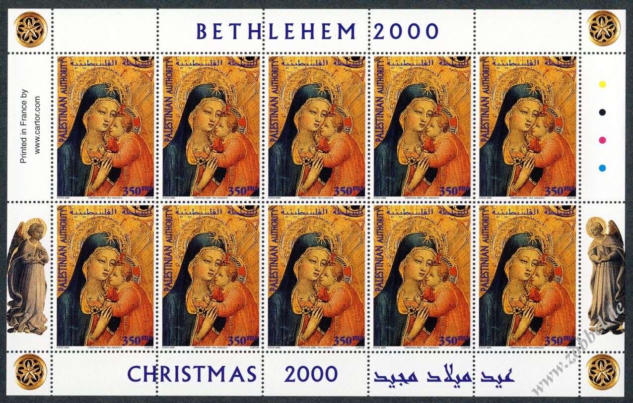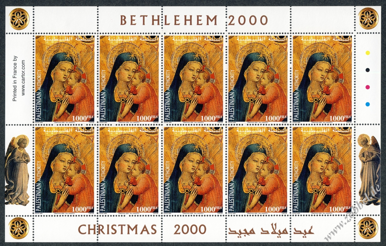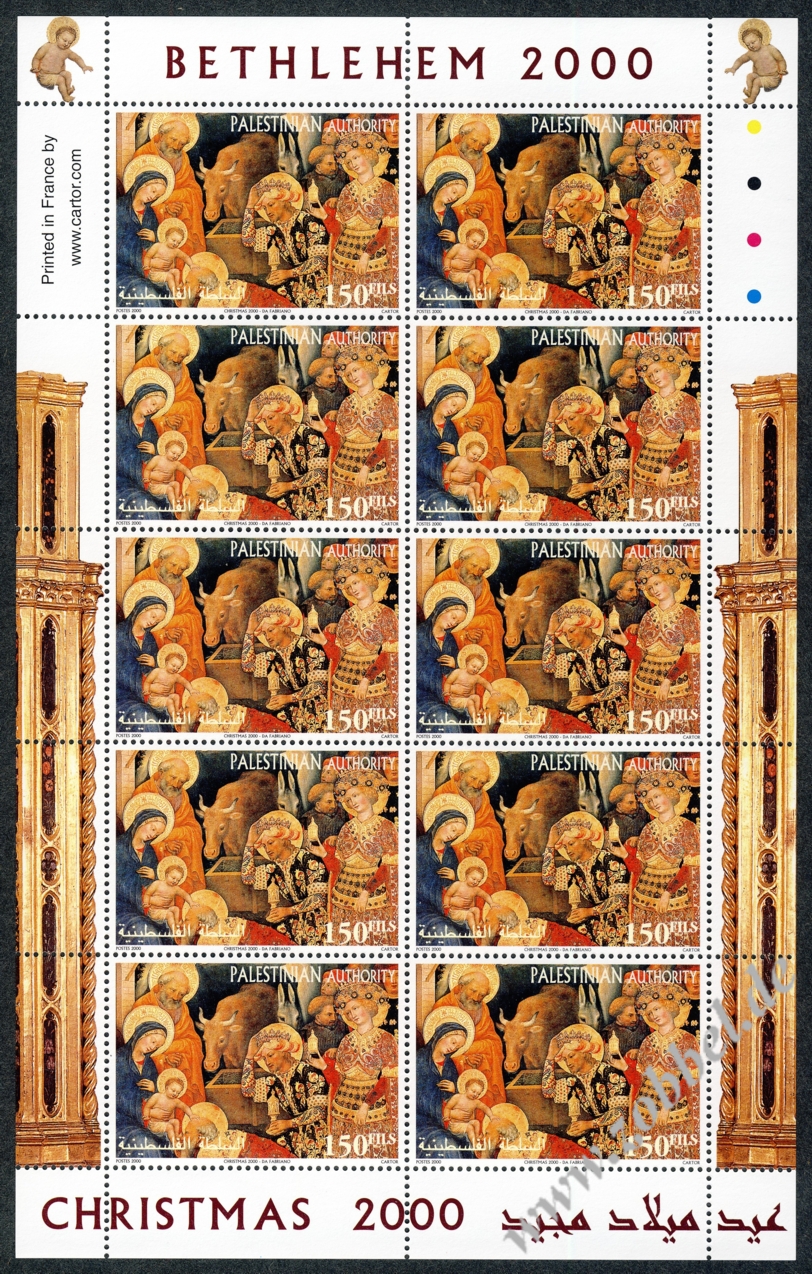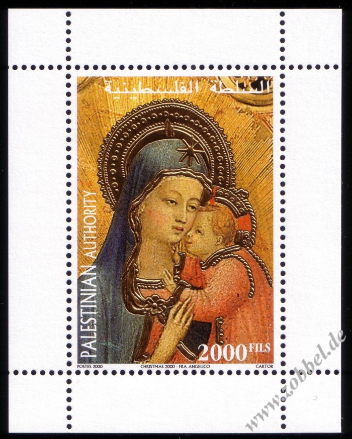 Palestine issued a stamp series on 25.12.2000 commemorating Christmas as well as the celebrations "Bethlehem 2000": the six stamps (denominations: 100, 150, 250, 350, 500, and 1,000 Fils) and a block (2,000 Fils) depict three more renaissance paintings.