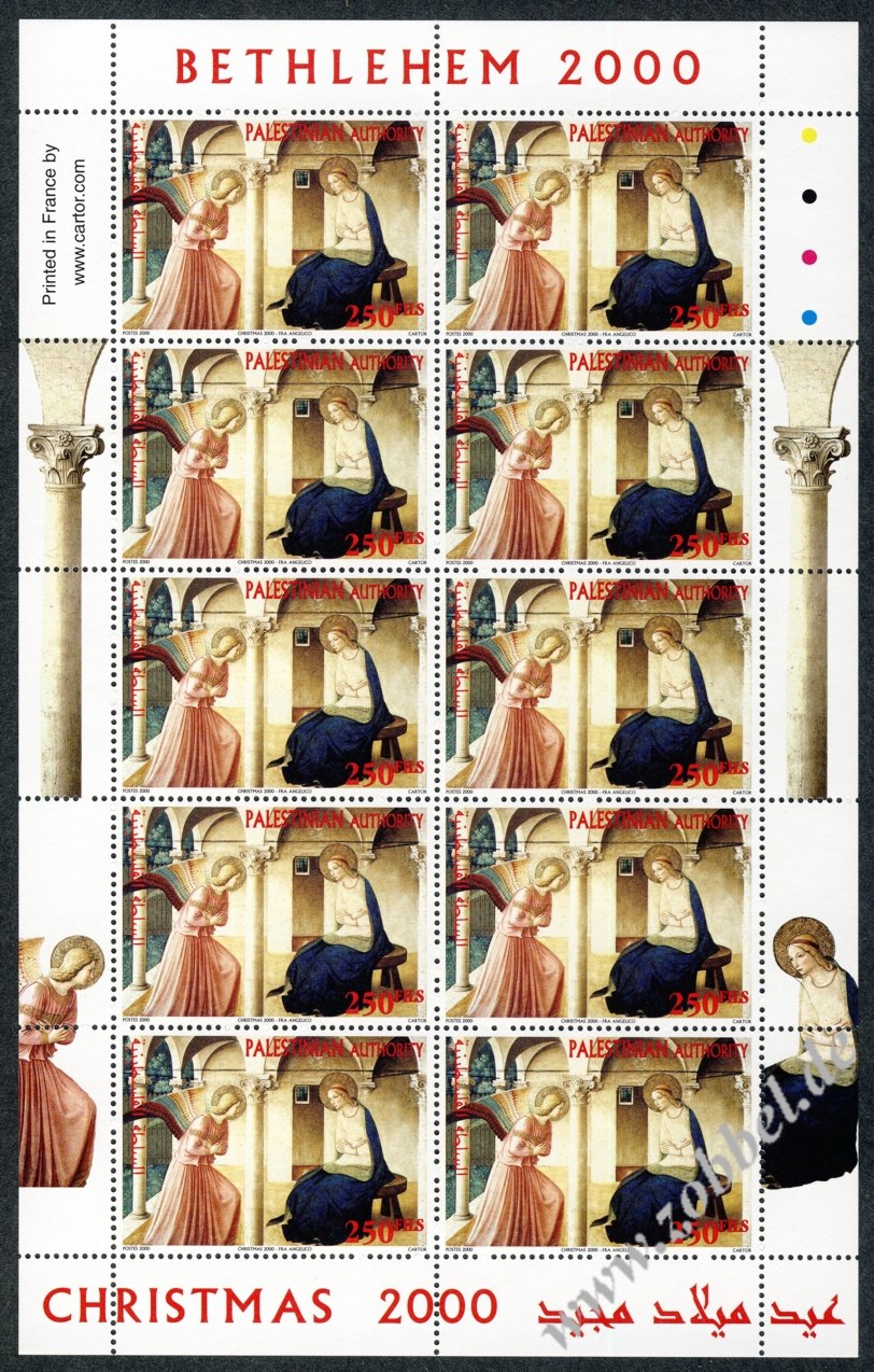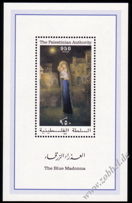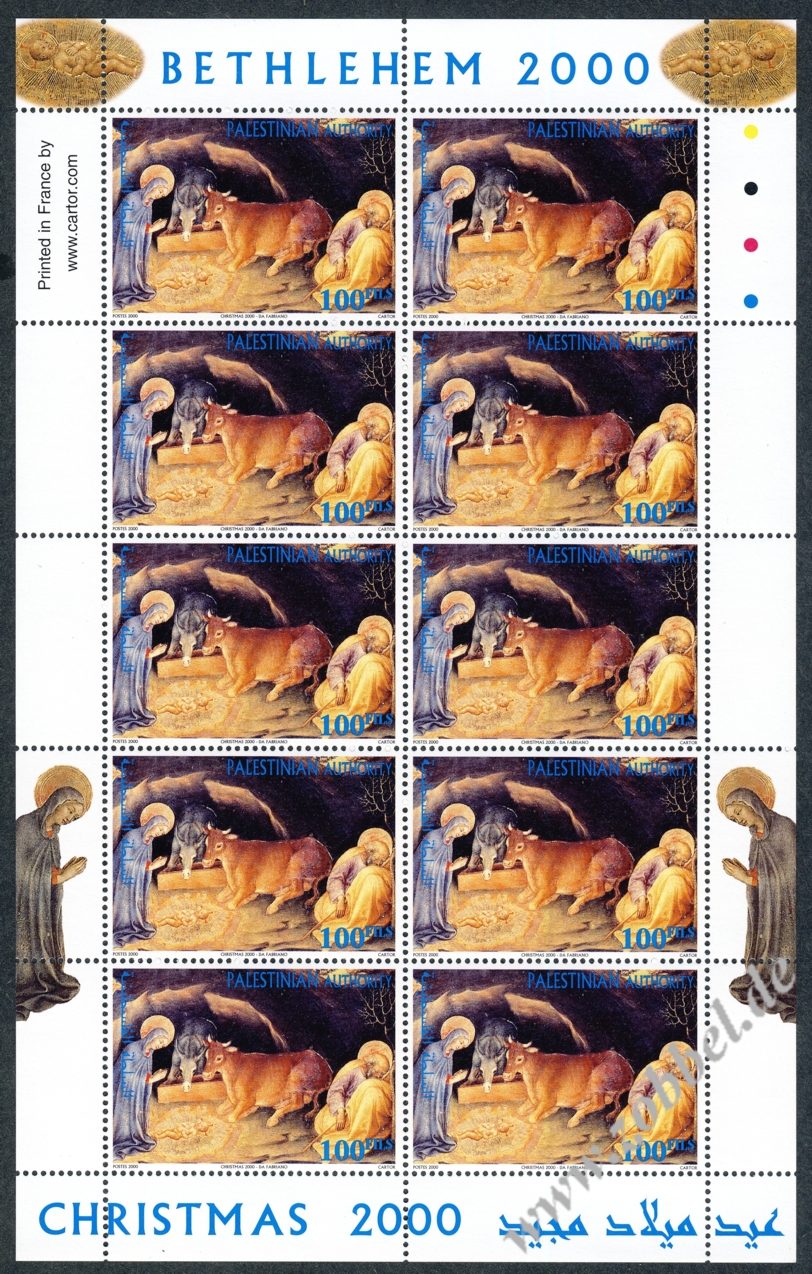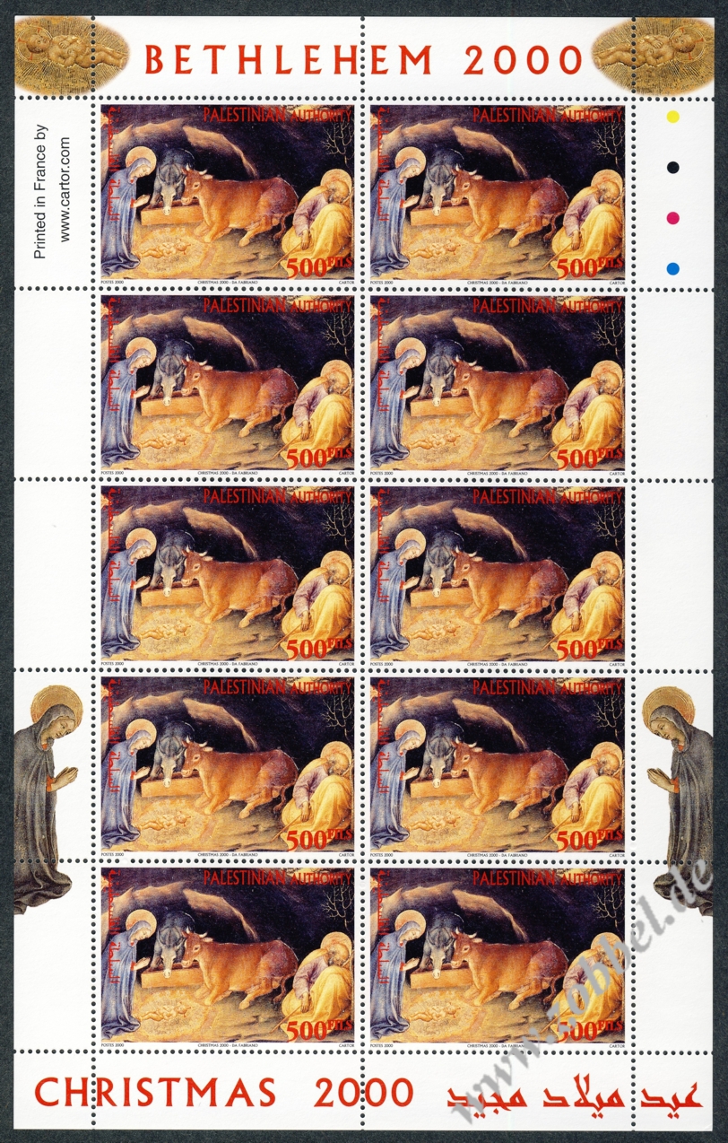 Palestine issued a stamp series on 25.12.2000 commemorating Christmas as well as the celebrations "Bethlehem 2000": the six stamps (denominations: 100, 150, 250, 350, 500, and 1,000 Fils) and a block (2,000 Fils) depict three more renaissance paintings.