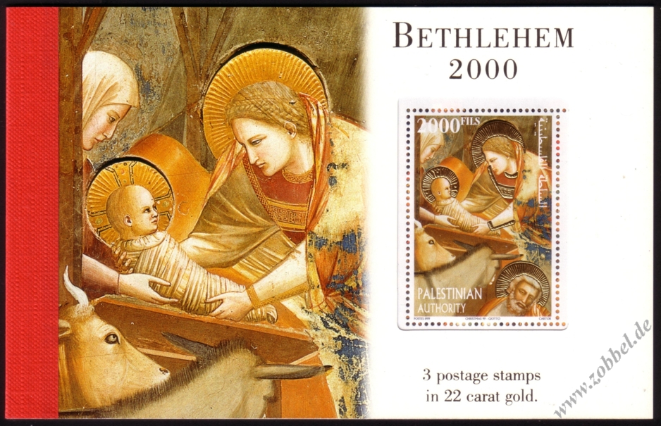 On 28.06.2000 Palestine issued a stamp booklet as part of its series commemorating the "Bethlehem 2000" celebrations.