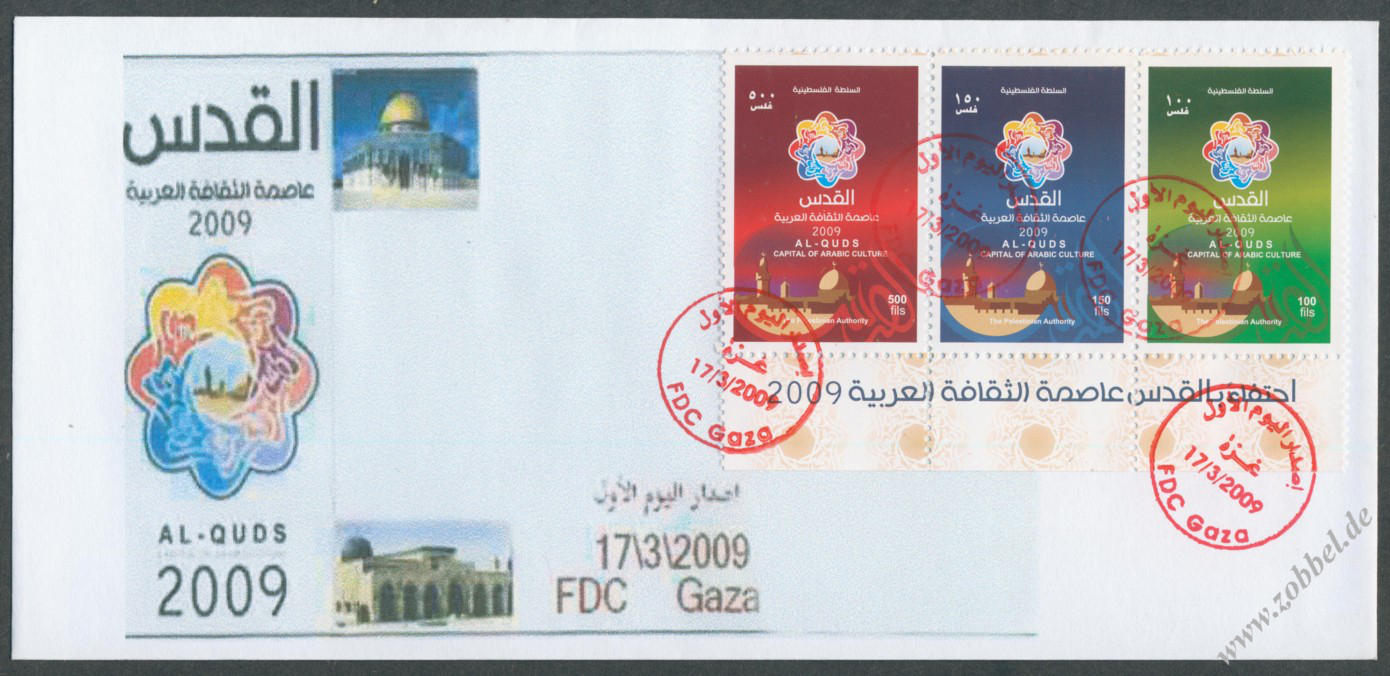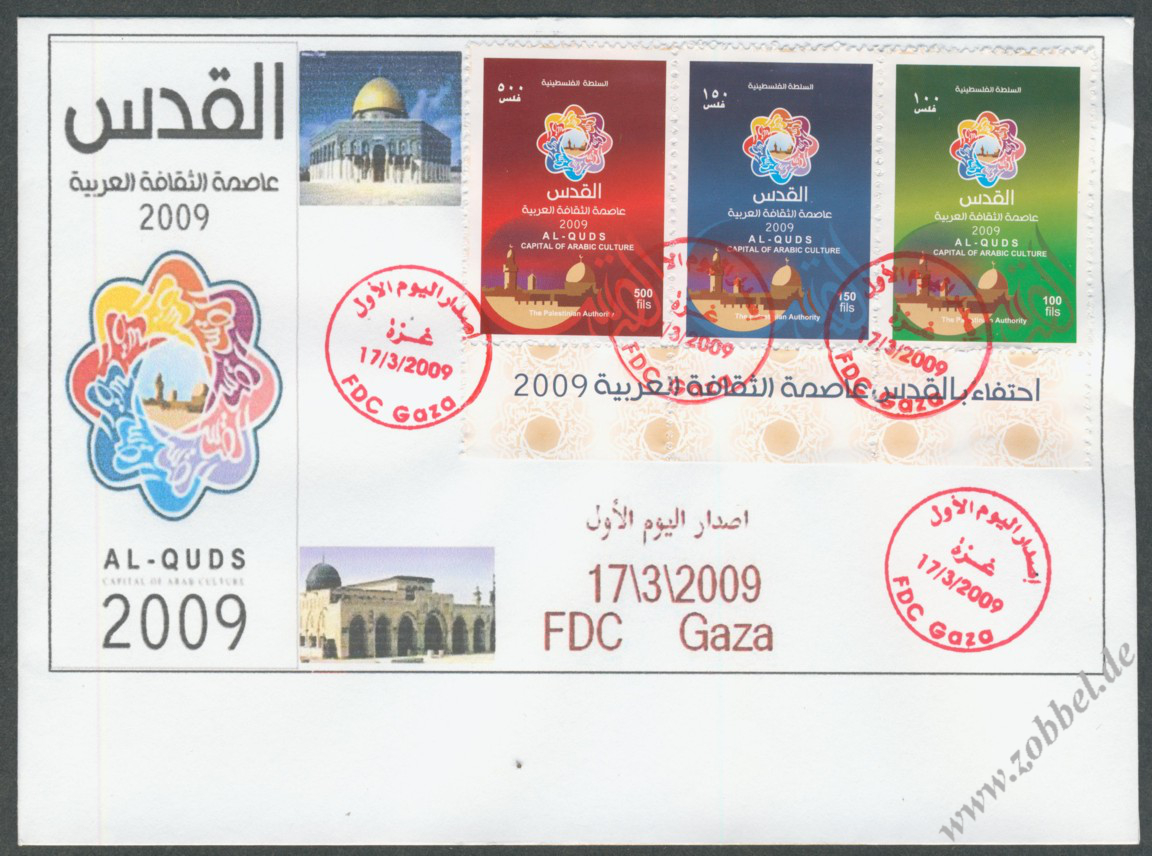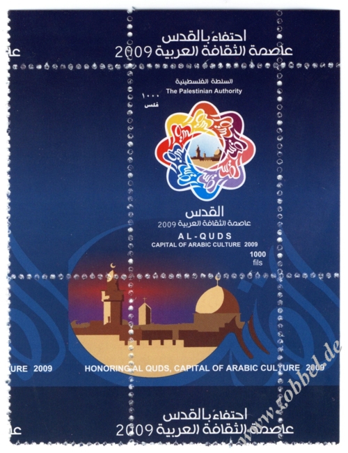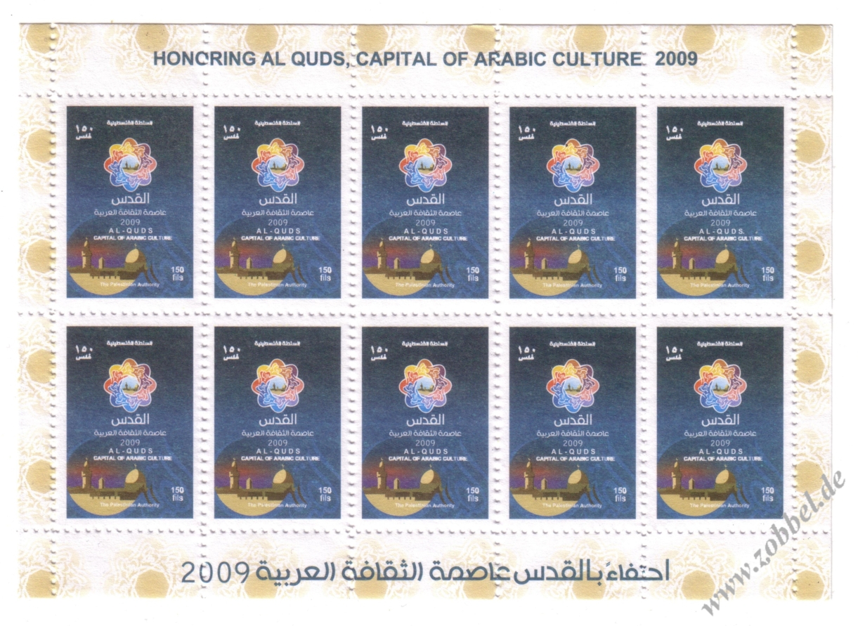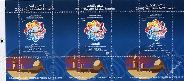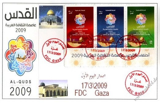 According to reports, both the PNA (Fatah, controlling the West Bank) and Hamas (controlling the Gaza Strip) have prepared series of stamps commemorating Jerusalem's status as Capital of Arab Culture 2009 (القدس عاصمة الثقافة العربية).