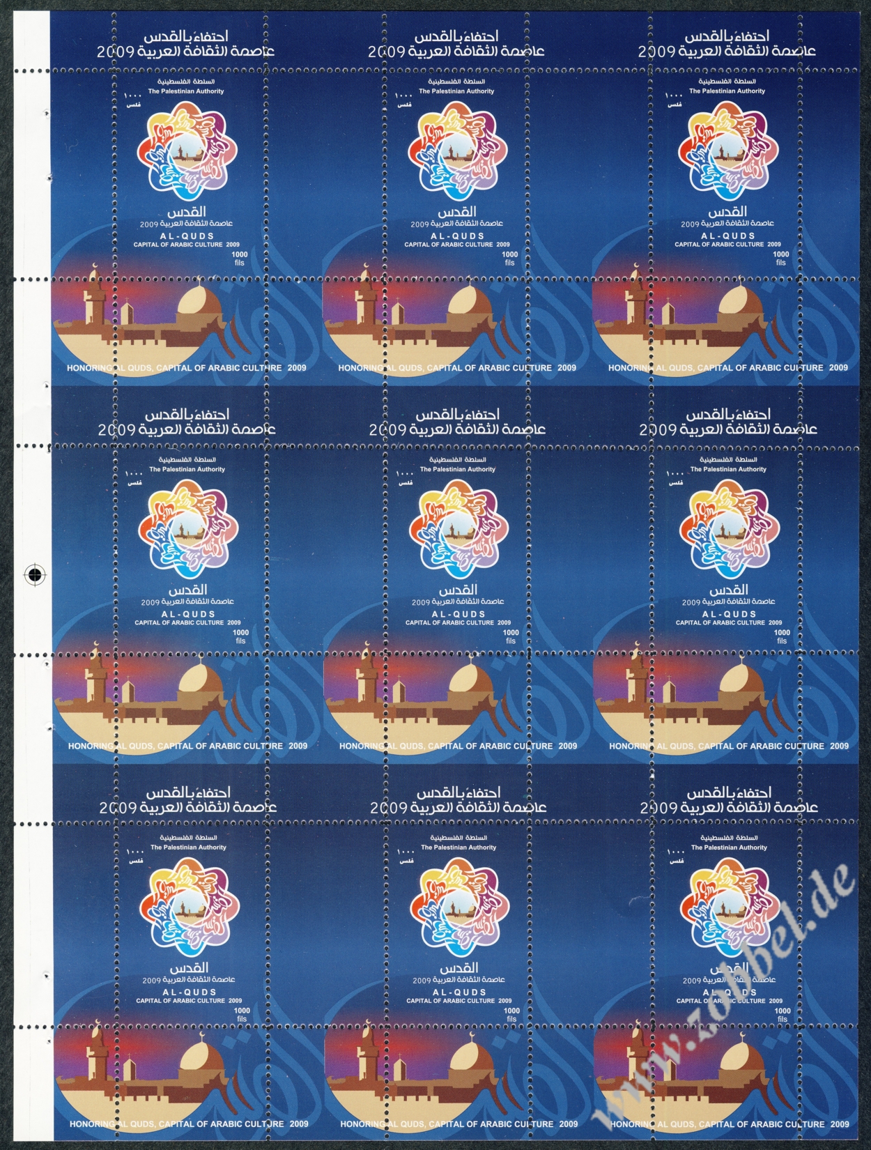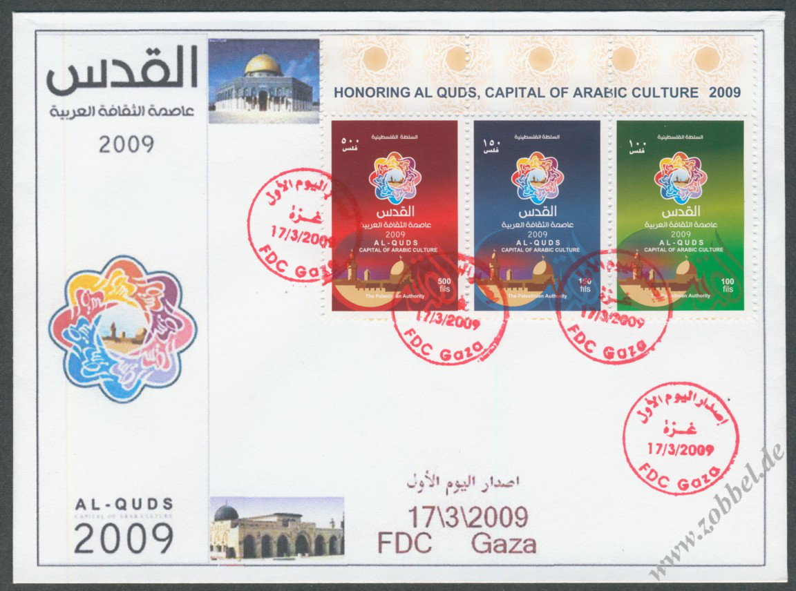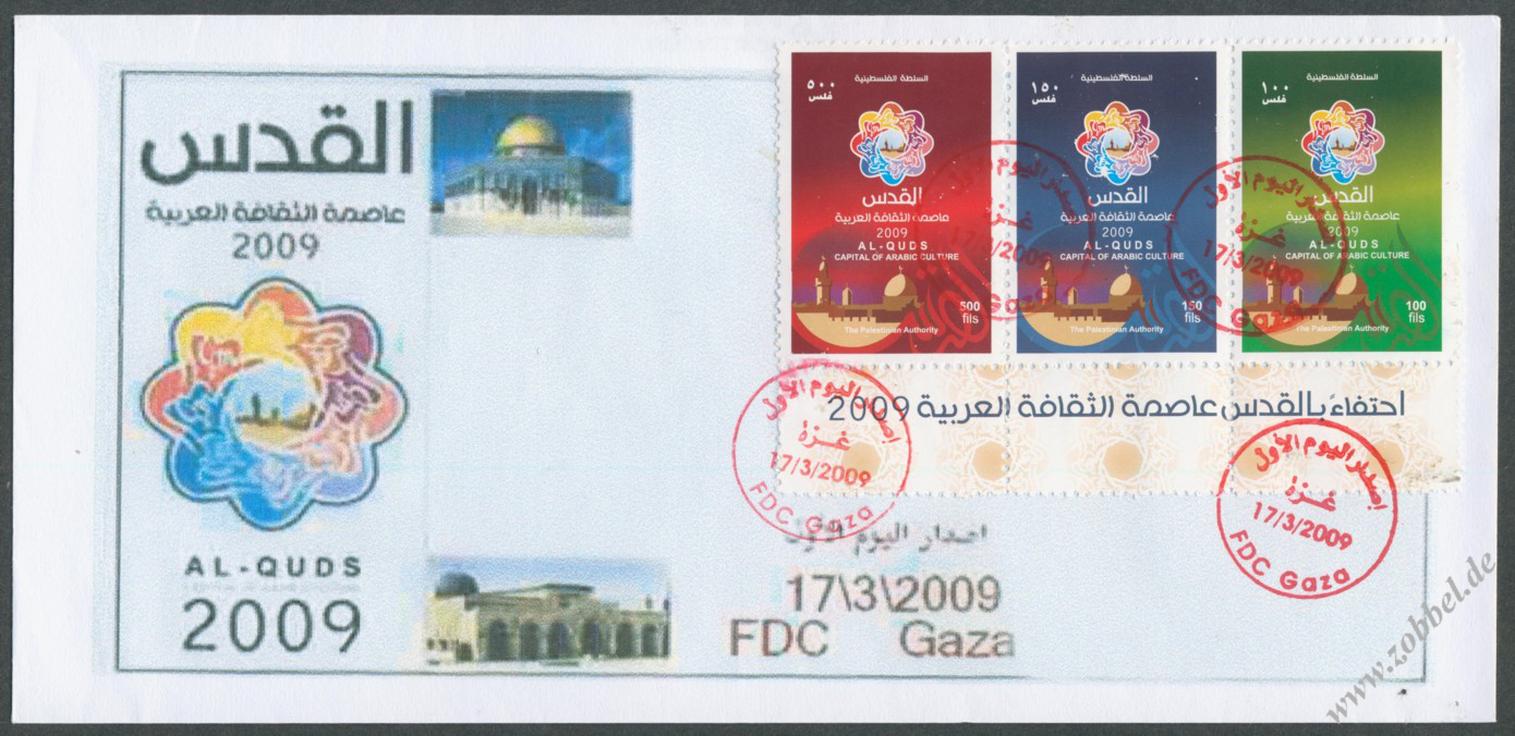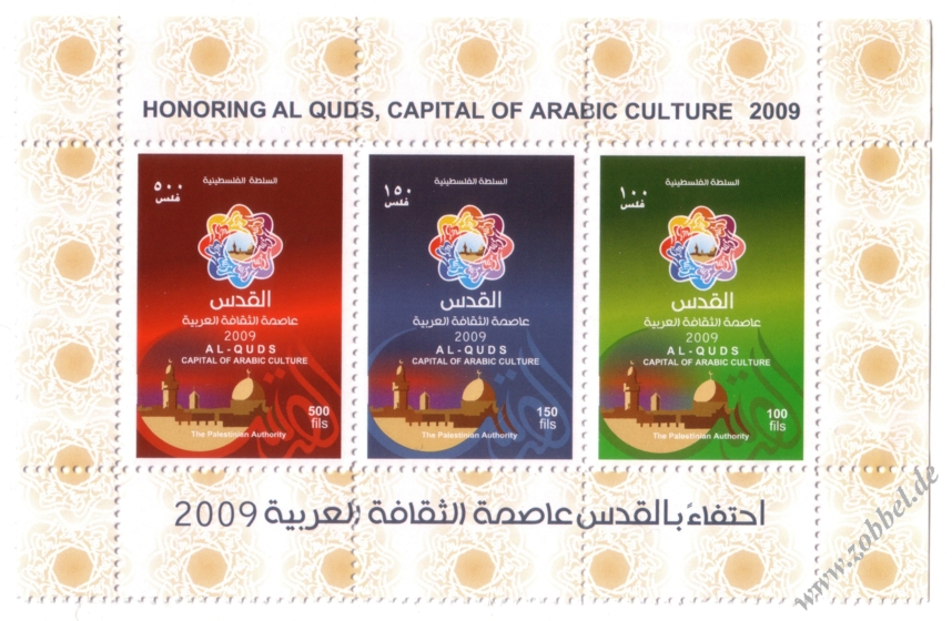 According to reports, both the PNA (Fatah, controlling the West Bank) and Hamas (controlling the Gaza Strip) have prepared series of stamps commemorating Jerusalem's status as Capital of Arab Culture 2009 (القدس عاصمة الثقافة العربية).