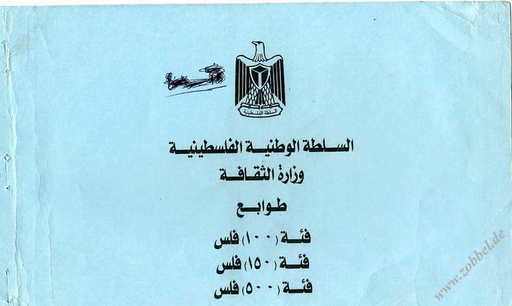 West Bank (inscribed "Palestinian Authority"): 4 stamps (150, 250, 350, 500 Fils) and 1 block (1000 Fils) – unissued. Only essays exist.