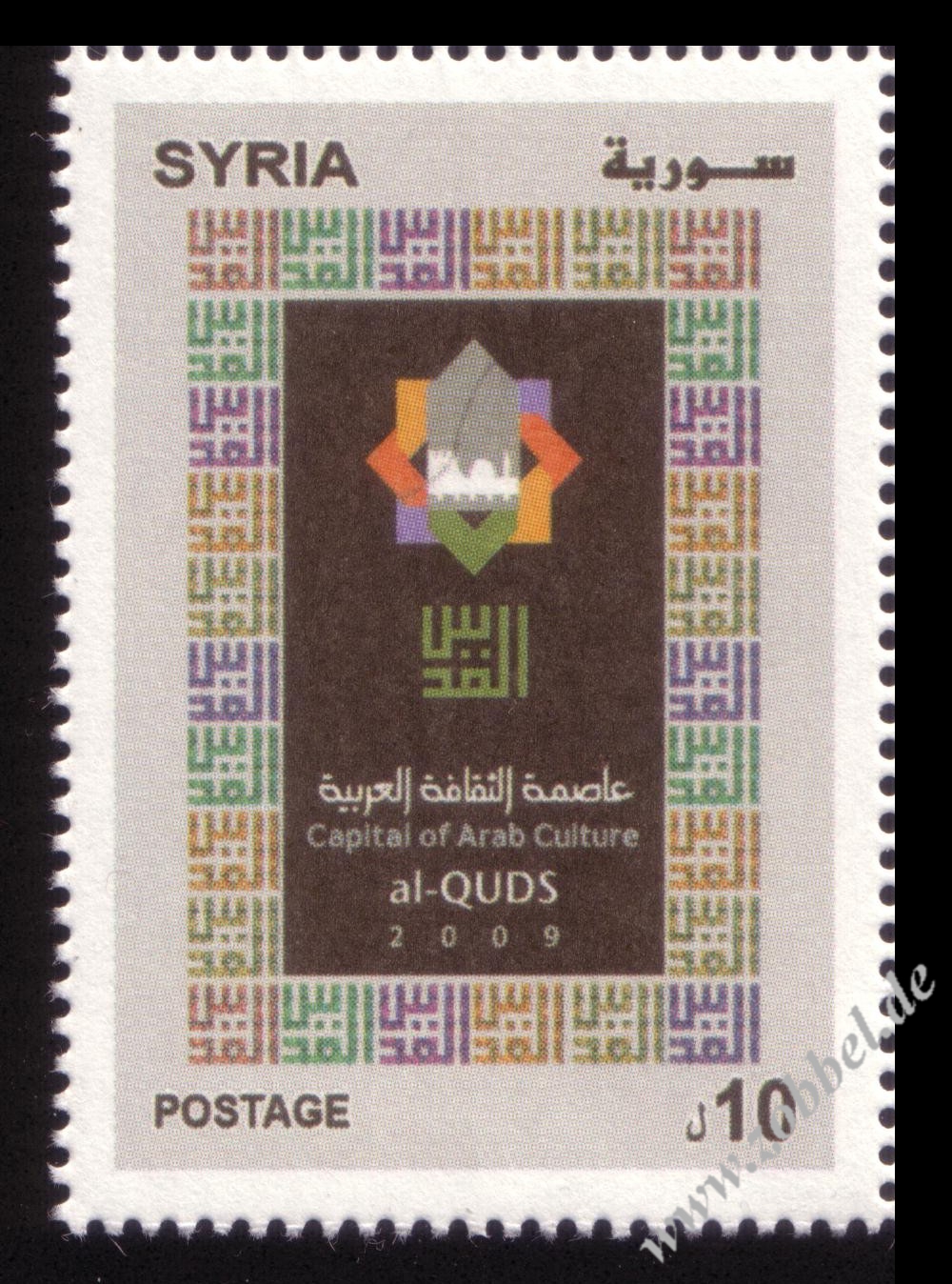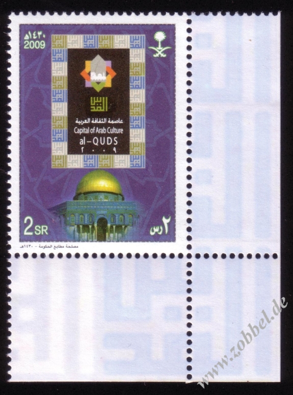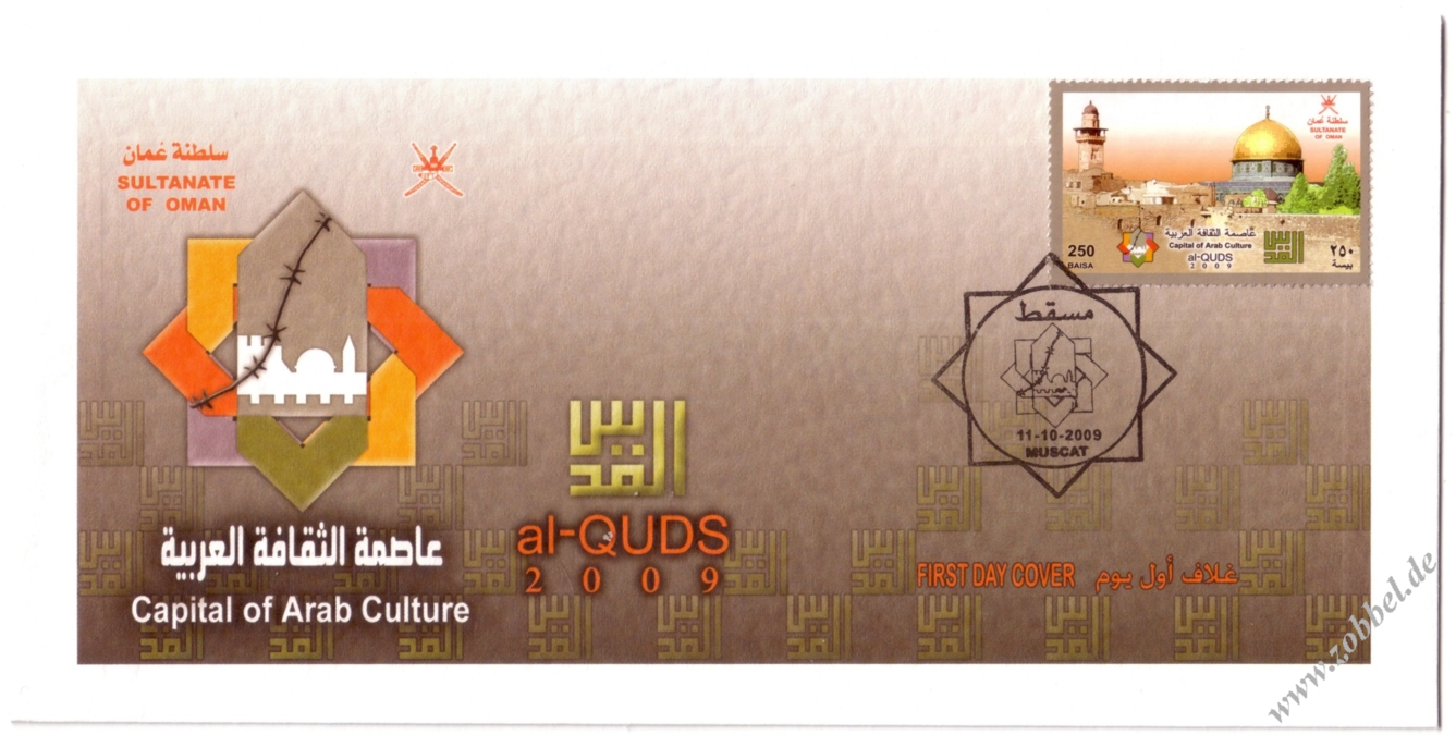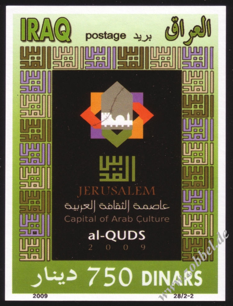 The Ministry of Telecommunications and Information Technology today announced the issue of postage stamps with the slogan "Al-Quds: Capital of Arabic Culture 2009". The stamps were printed in three values: 100 fils (green), 150 fils (blue), and 500 fils (red). These will be available in the next few days at all post offices in the Gaza Strip.