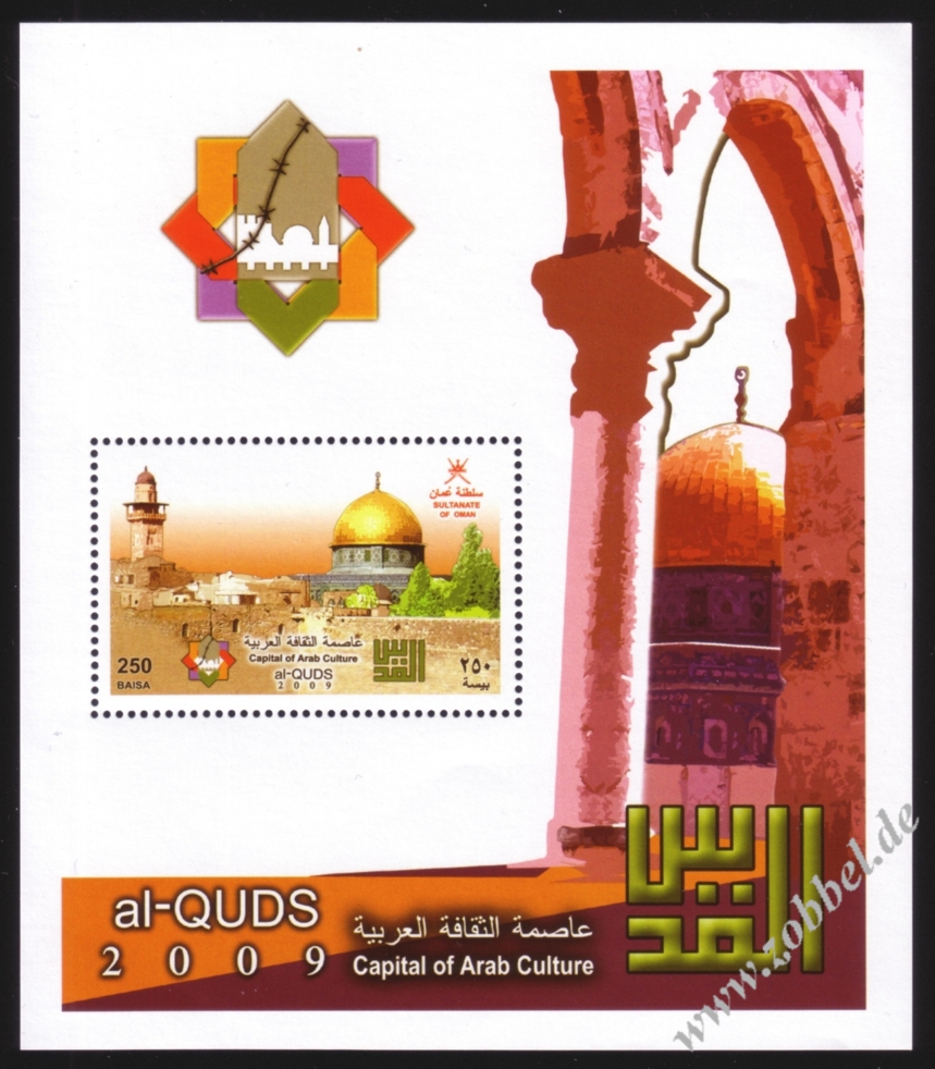 The first stamps to be issued were the se-tenant sets of three values to commemorate Jerusalem as the 2009 Capital of Arab Culture.