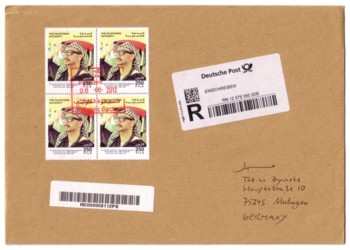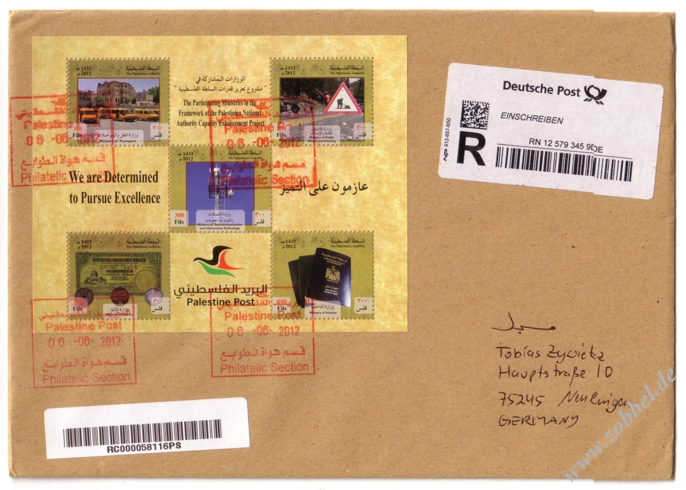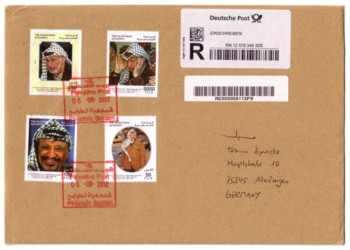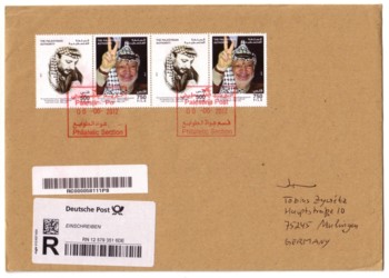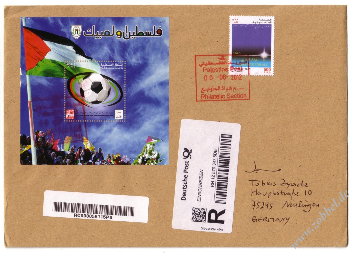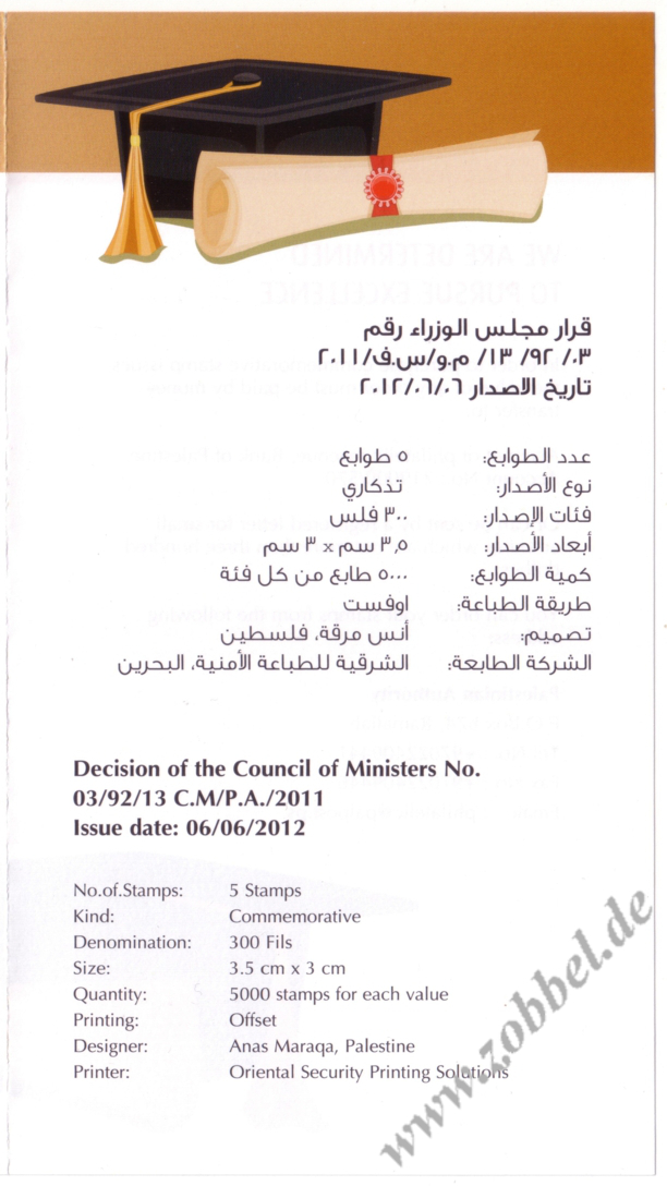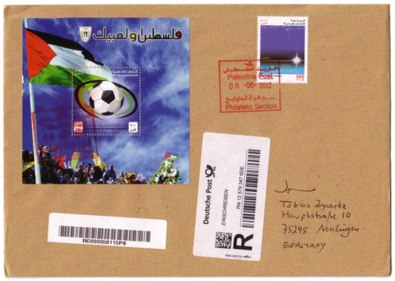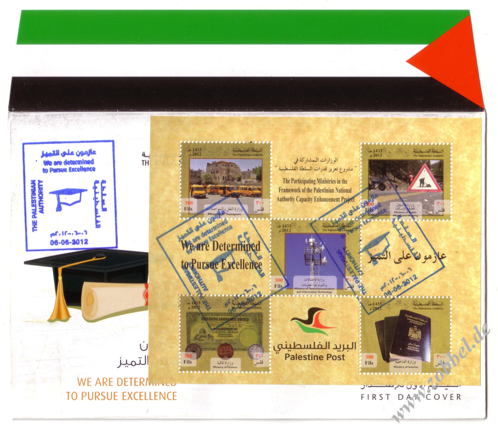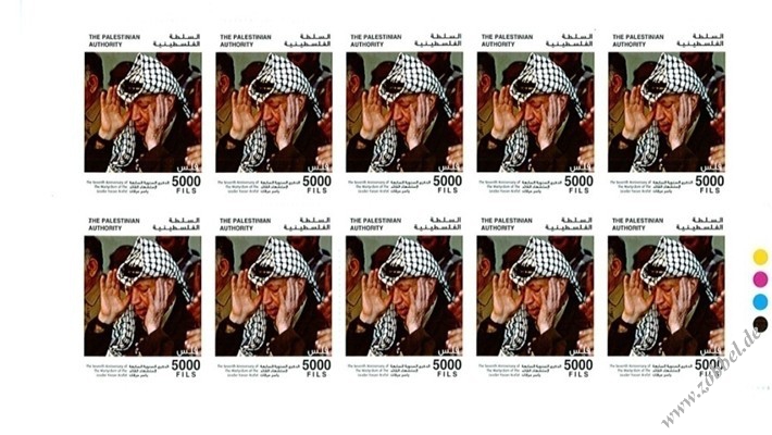 According to reports, the Hamas-controlled Ministry of Telecom & Information Technology in Gaza has issued on 24.12.2012 a stamp block under the slogan "Isra & Maraj Journey". The block is denominated for 3,000 Fils (print-run: 3,000).