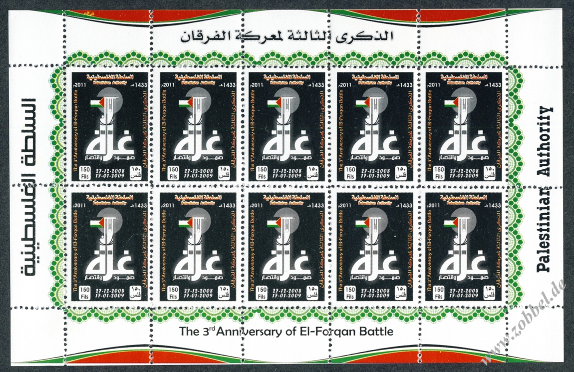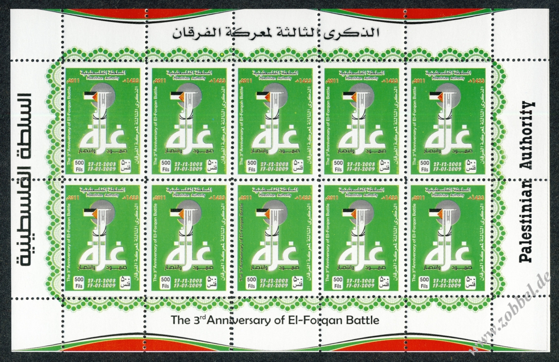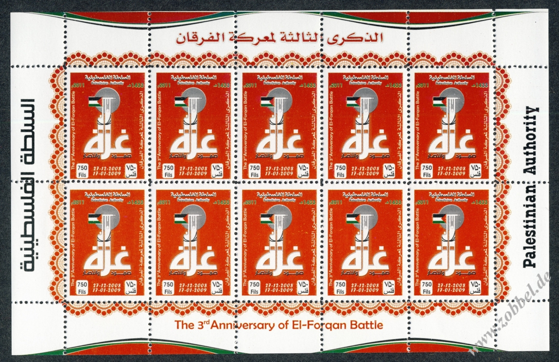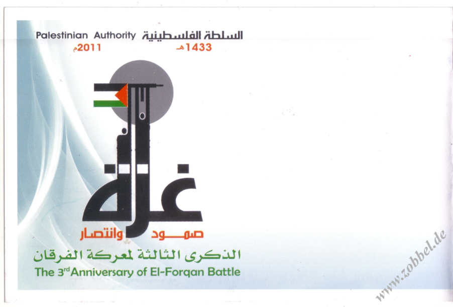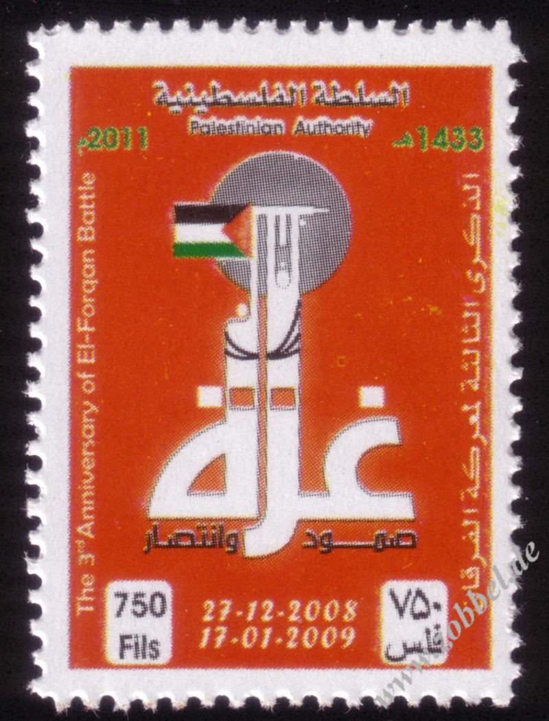 According to reports, the Hamas-controlled Ministry of Telecom & Information Technology in Gaza has issued on 24.12.2012 a stamp block under the slogan "Buraq Revolution Martyrs". The block is denominated for 3,000 Fils (print-run: 3,000).