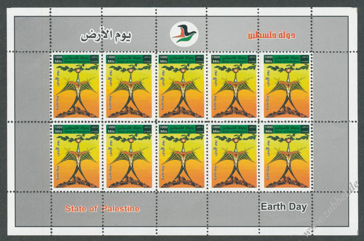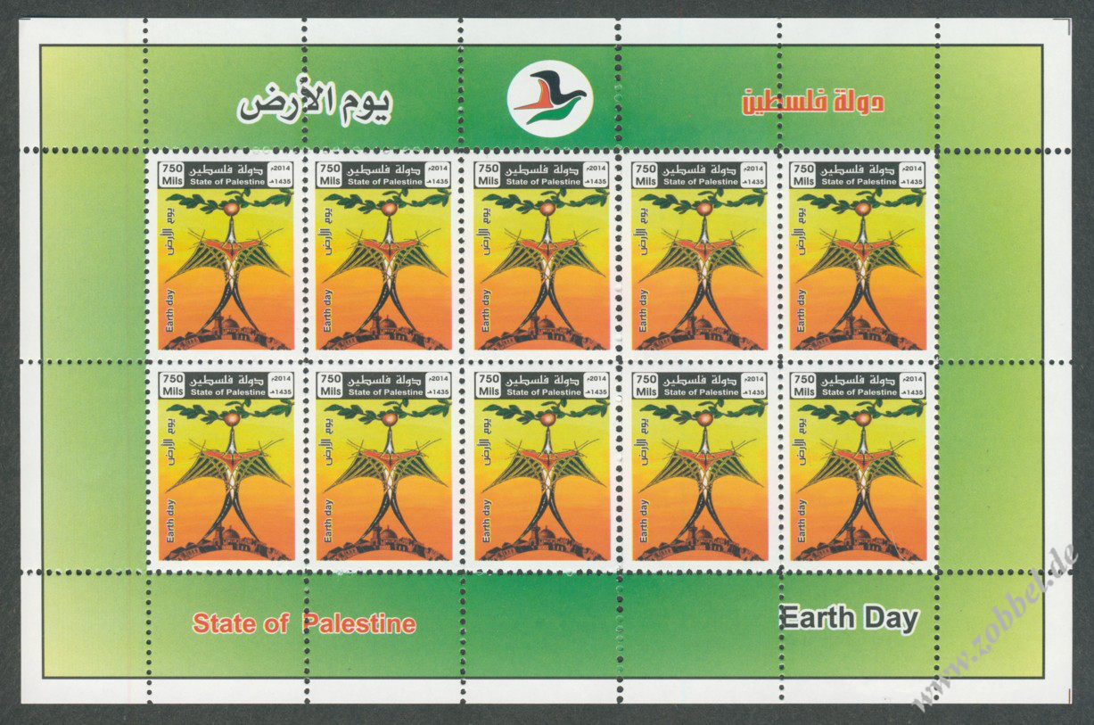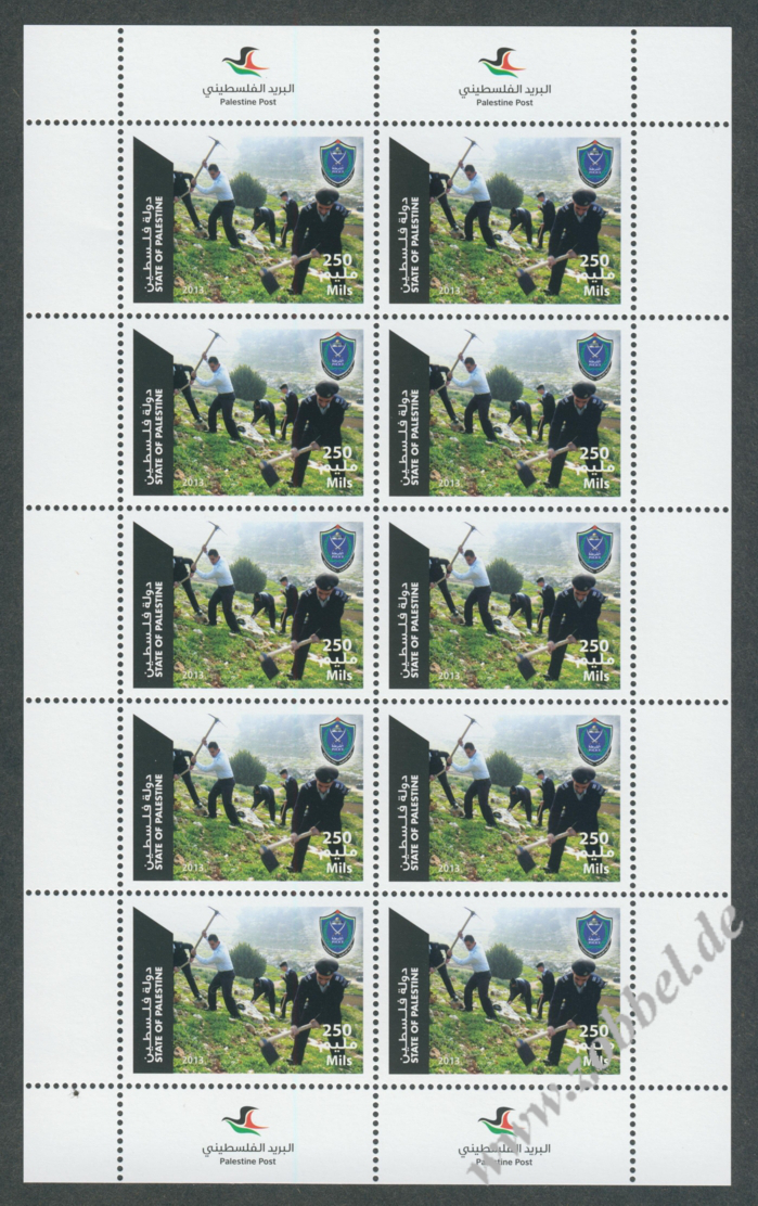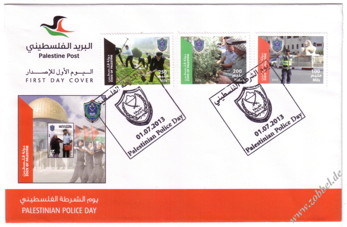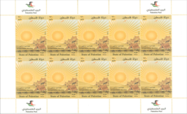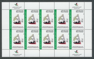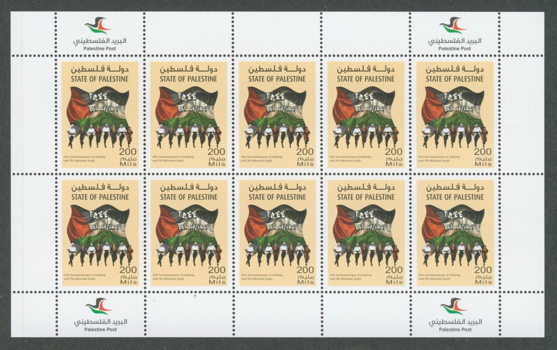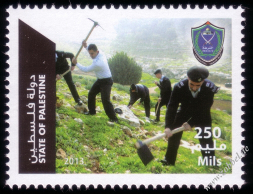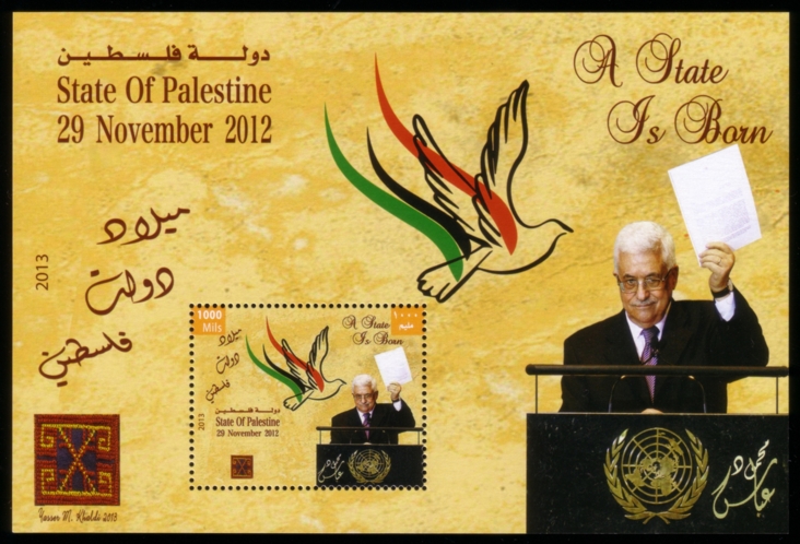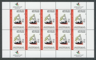 Palestine Post has issued in January 2014 the stamp series "A State is Born – The Birth of the State of Palestine" containing six stamps in two blocks. The issue was originally planned for 29.11.2013. Denominations are: 5x200 Mils (block 1), and 1,000 Mils (block 2).
