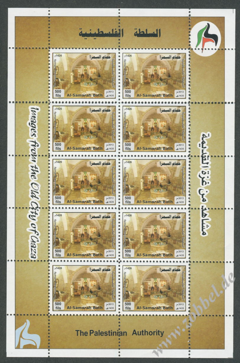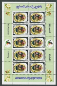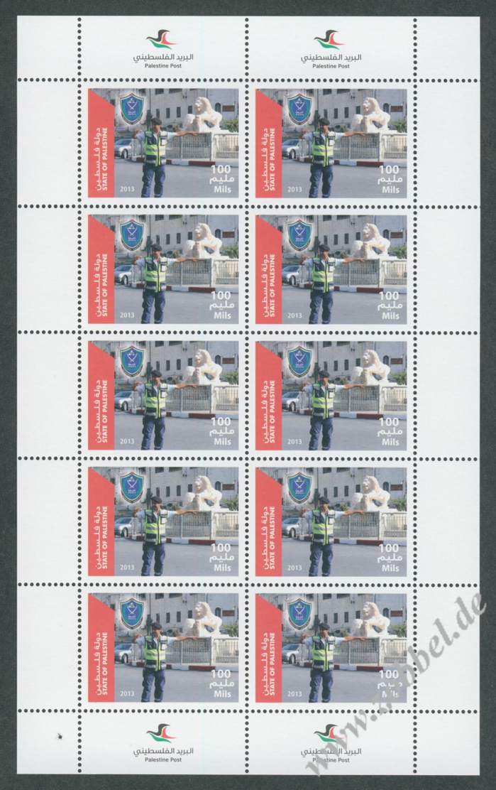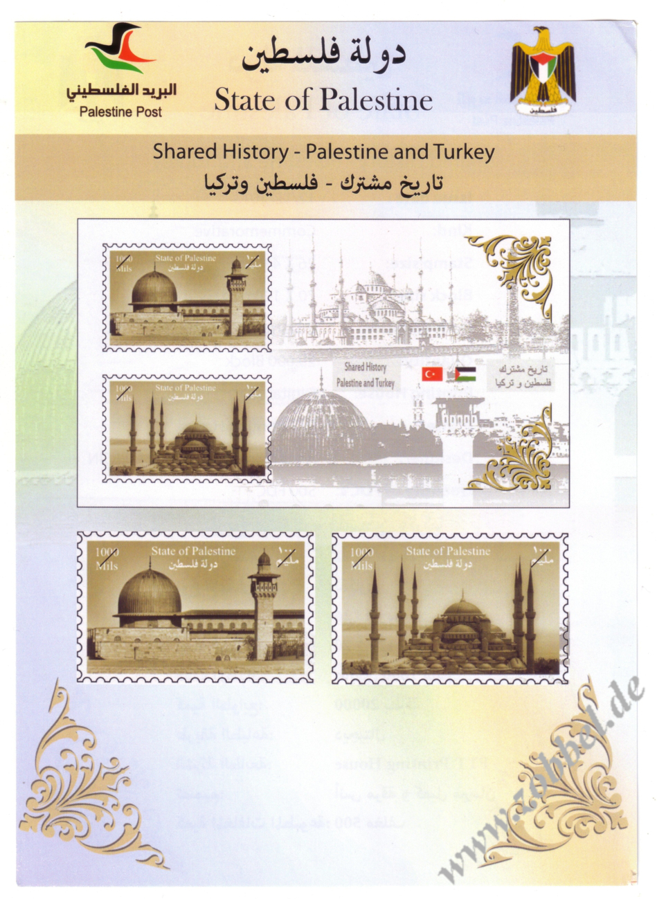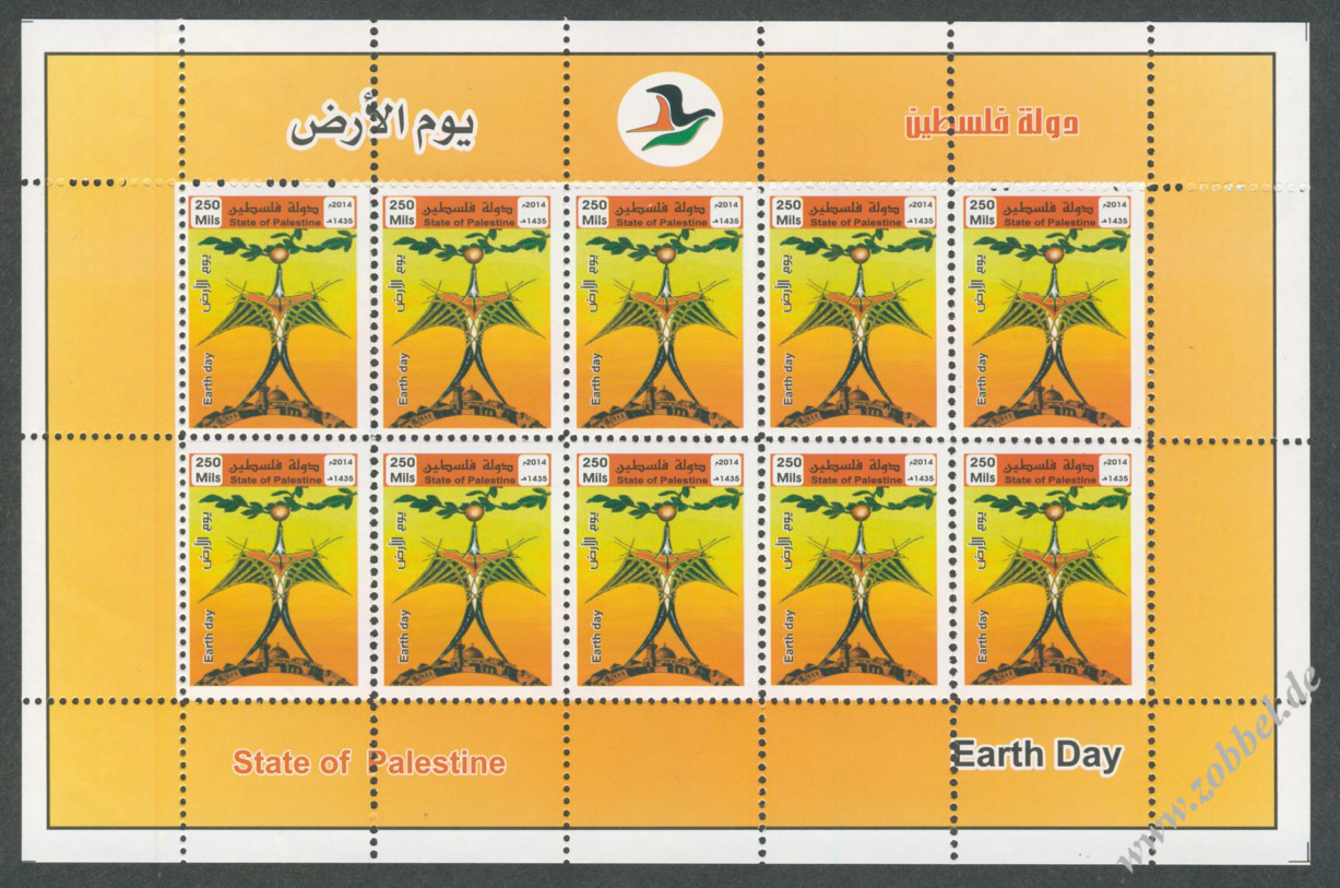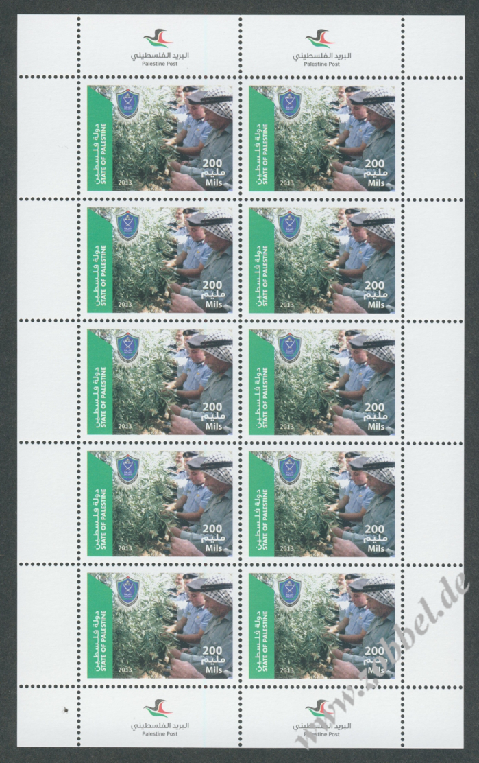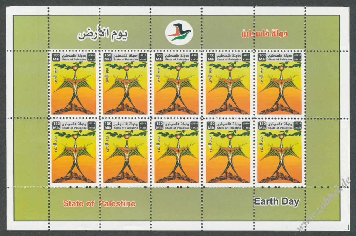 Palestine Post has issued in January 2014 the stamp series "A State is Born – The Birth of the State of Palestine" containing six stamps in two blocks. The issue was originally planned for 29.11.2013. Denominations are: 5x200 Mils (block 1), and 1,000 Mils (block 2).