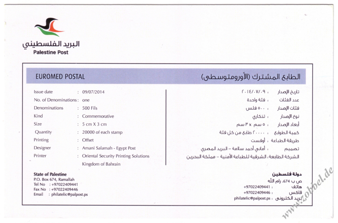 • البريد الفلسطيني يصدر طابع الأورومتوسطي (Palestine Post website)