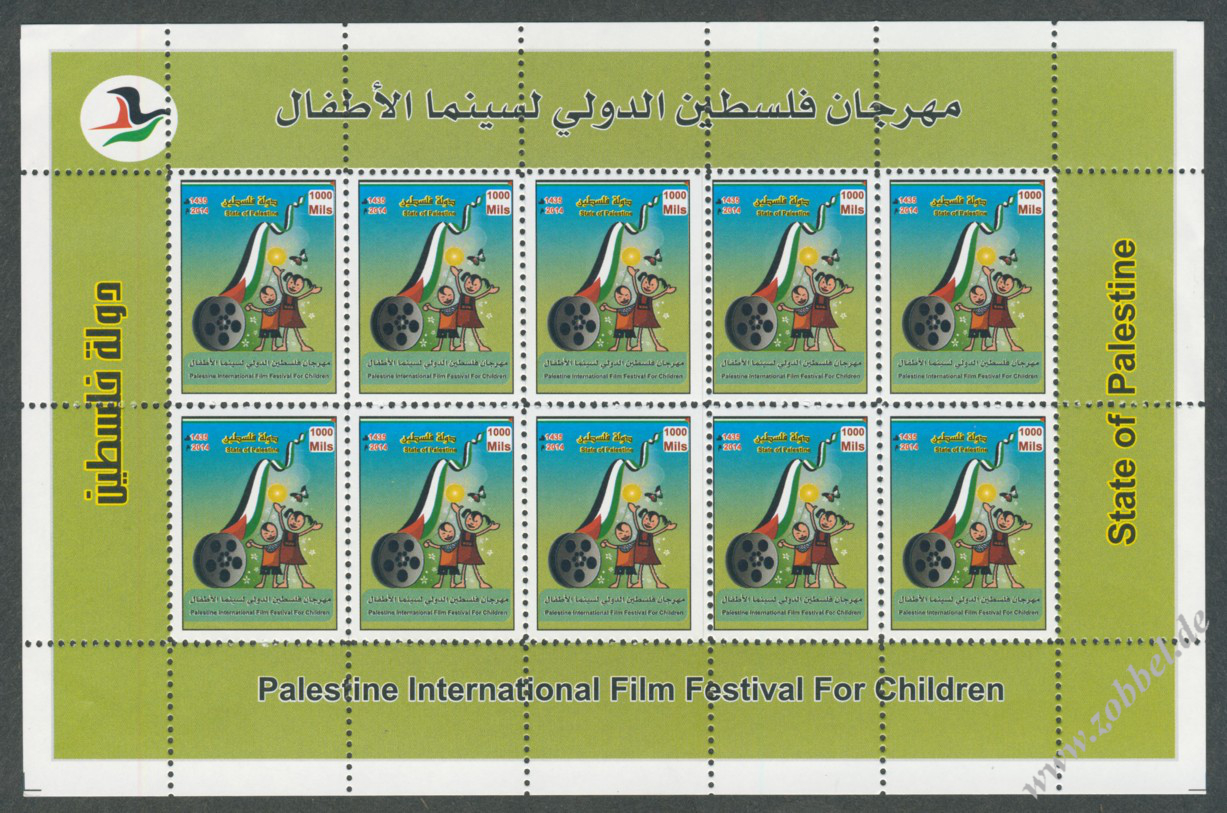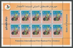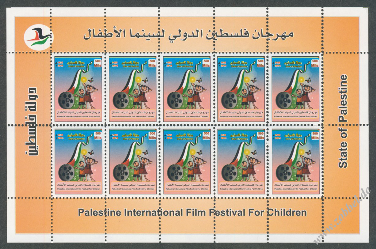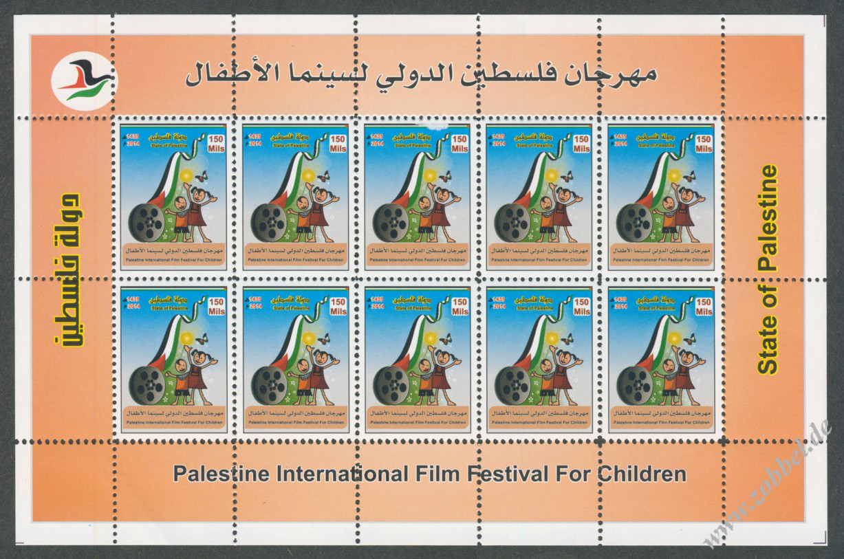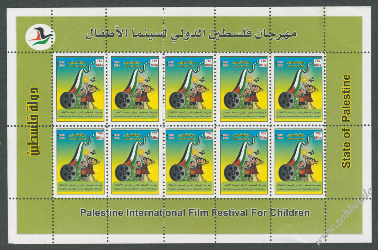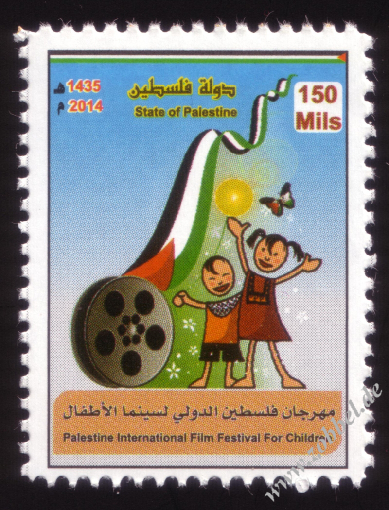 According to reports, the Ministry of Telecom & Information Technology in Gaza has issued in November 2014 a series of stamps under slogan "The Palestine International Film Festival for Children" (مهرجان فلسطين الدولي لسينما الأطفال). The festival was originally planned for 16-20.06.2013, but took place 20-23.11.2013 at the Holst Park & Cultural Centre in Toffah, Gaza. The stamp series consists of 4 stamps denominated at 150, 500, 750, and 1,000 Mils, printed in shhets of ten (5x2). Designd by Jehad Asqoul (Ministry of Culture) and printed locally (7,000 of each value) by Dar al-Arqam Library Printing Shop, Remal. The nominal issue date is 5.04.2014 (postmark on FDC).