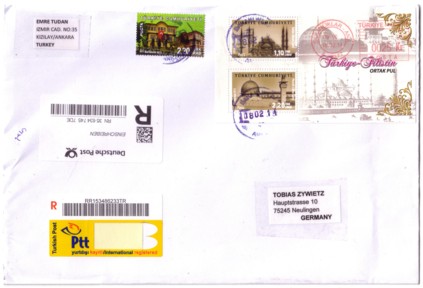 | The first Euro-Mediterranean conference on the Postal Sector was held in Marseille, France, on 23–25.10.2013, organized by Postal Union for the Mediterranean (PUMed, est. 2011, headquarters: Malta) and La Groupe La Poste (French state post). PUMed member countries: Croatia, Cyprus, Egypt, France, Greece, Italy, Jordan, Lebanon, Libya, Malta, Mauritania, Monaco, Morocco, Palestine, Portugal, Slovenia, Spain, Syria, Tunisia, and Turkey. The stamp was designed by Amani Ahmed Ali (Amani Salama, Amani Salamah) of Egypt Post, and several PUMed countries have issued this design: Cyprus, Egypt, France, Greece, Jordan, Lebanon, Libya, Malta, Morocco, Slovenia, and Syria. |